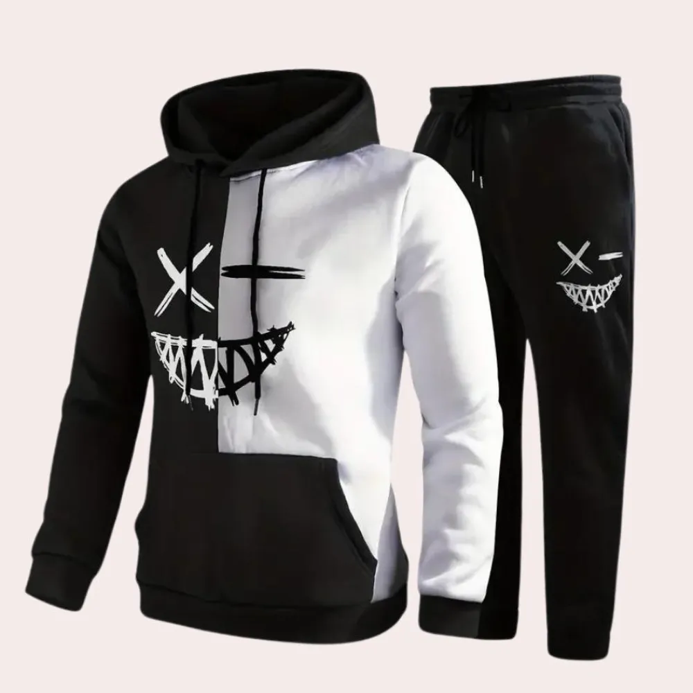 De EWALD 2-delige heren set met hoodie en joggingbroek is precies wat je nodig hebt! Deze is ontworpen voor de moderne man die niet wil inboeten op stijl, zelfs niet in zijn meest relaxte momenten. Of je nu naar de sportschool gaat, een chill dag thuis hebt of lekker de stad in gaat, met de EWALD set ben je altijd goed gekleed en comfortabel.