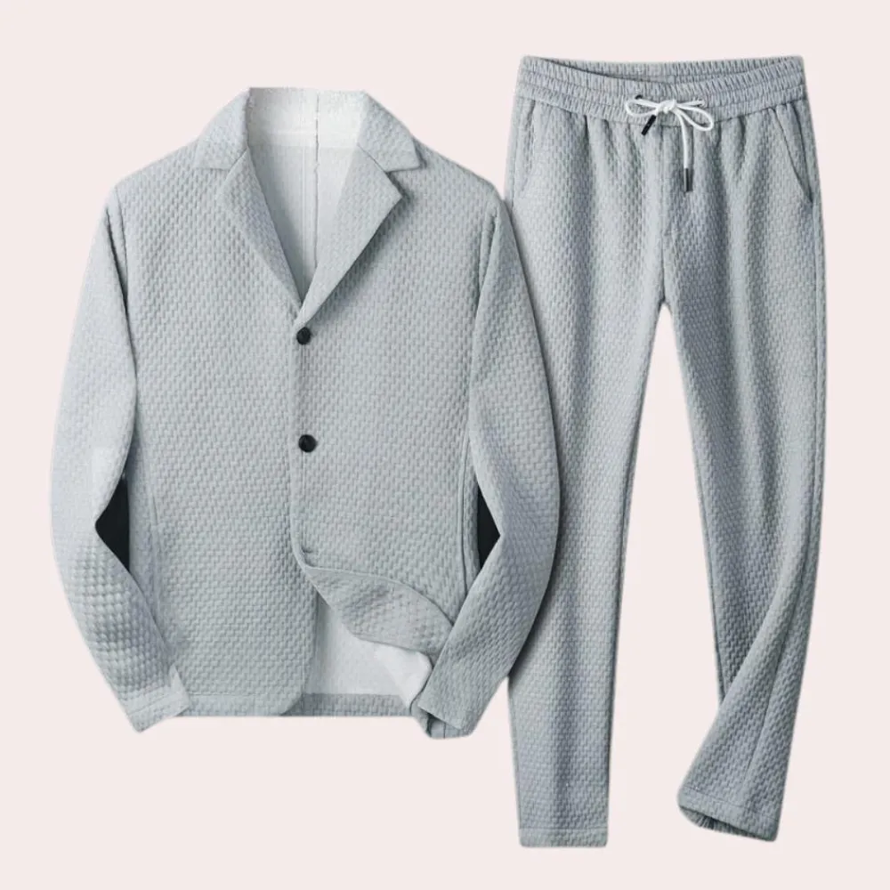 Verhoog je casual mode met de Henrikas Luxe 2-delige set voor heren, ontworpen voor de moderne man die comfort en stijl waardeert. Het bovenstuk heeft een klassieke notch-kraag en een nette knoopsluiting, die zorgt voor een verzorgde maar ontspannen uitstraling.