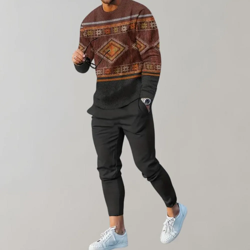 Hier heb je onze Leif Heren trainingspak met retroprint. Deze 2-delige set is zowel comfortabel als stijlvol voor het uitgaan, maar ook voor thuis op de bank. Deze 2-delige set is gemaakt van een comfortabele stof die geschikt is voor de lente, herfst en winter.