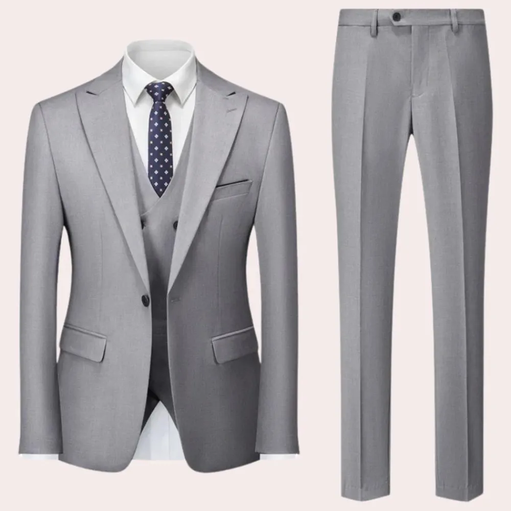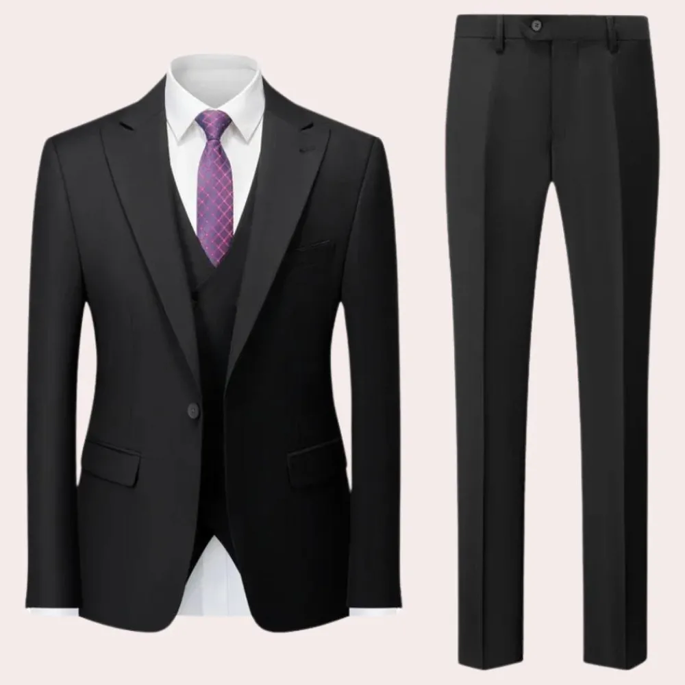 Hier heb je onze Mathias Business casual herenpak. Deze 2-delige set is zowel comfortabel als stijlvol voor het uitgaan. Deze 2-delige set is gemaakt van een comfortabele stof die geschikt is voor de lente, herfst en winter.
