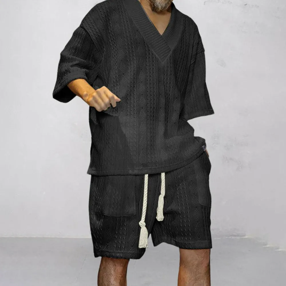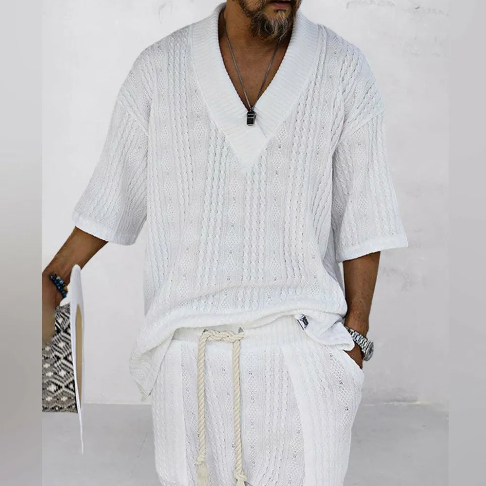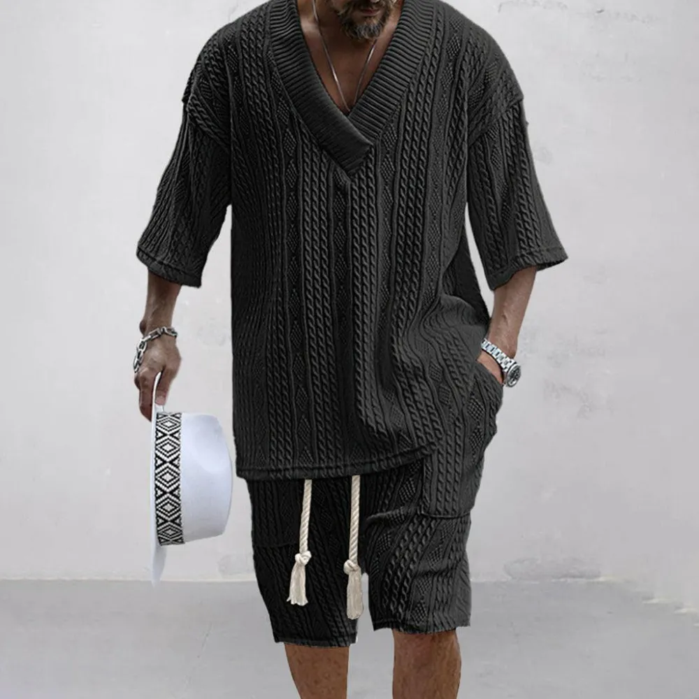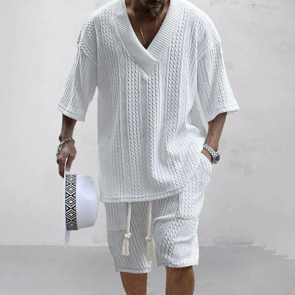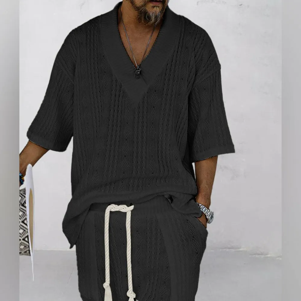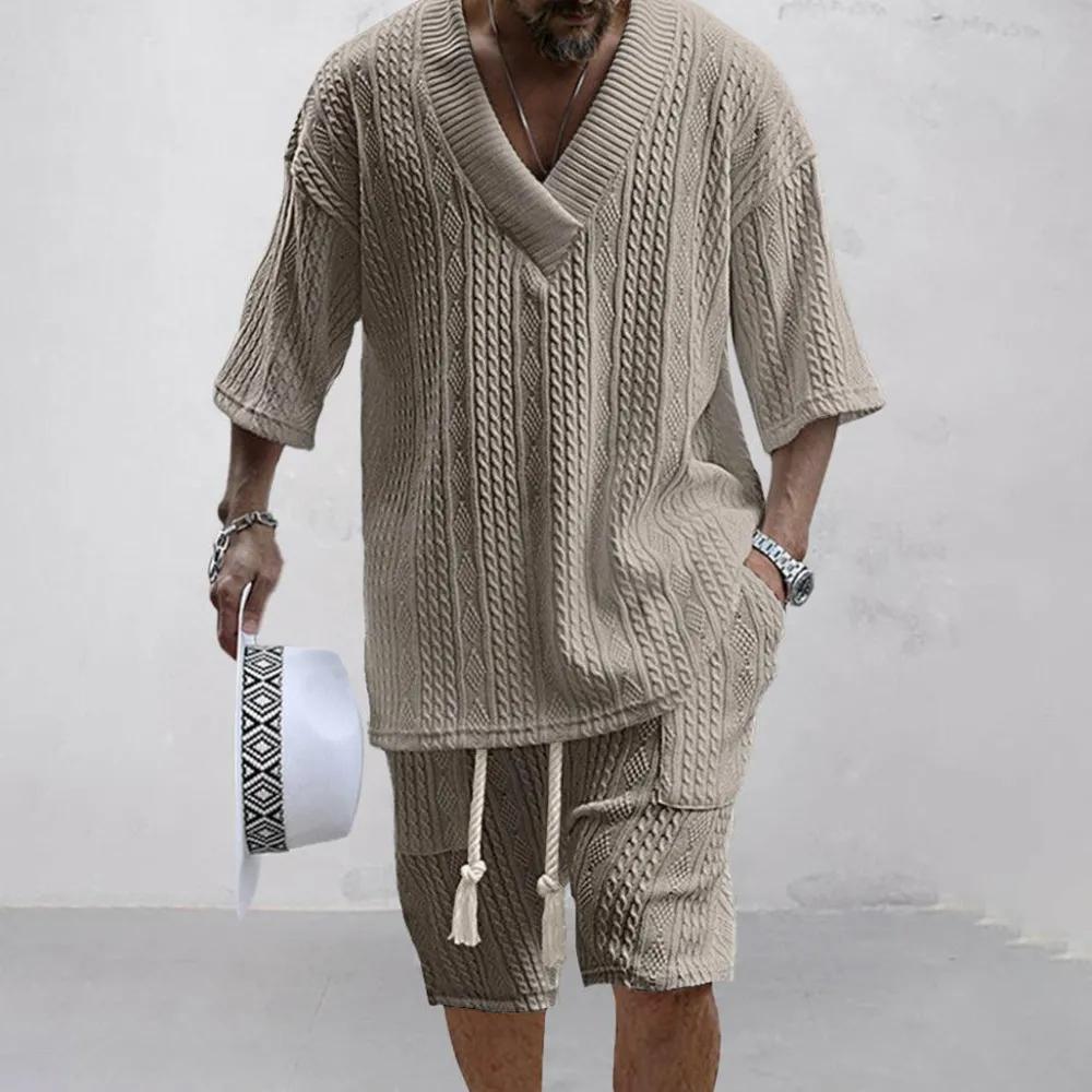 Rock in stijl met onze NICOLÒ Stijlvol gebreid shirt en shortset.