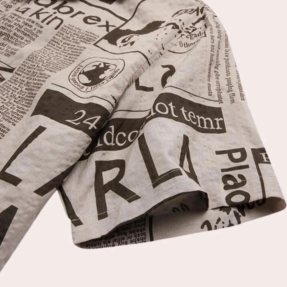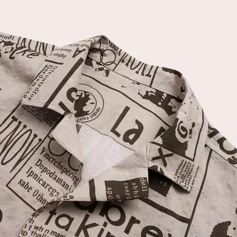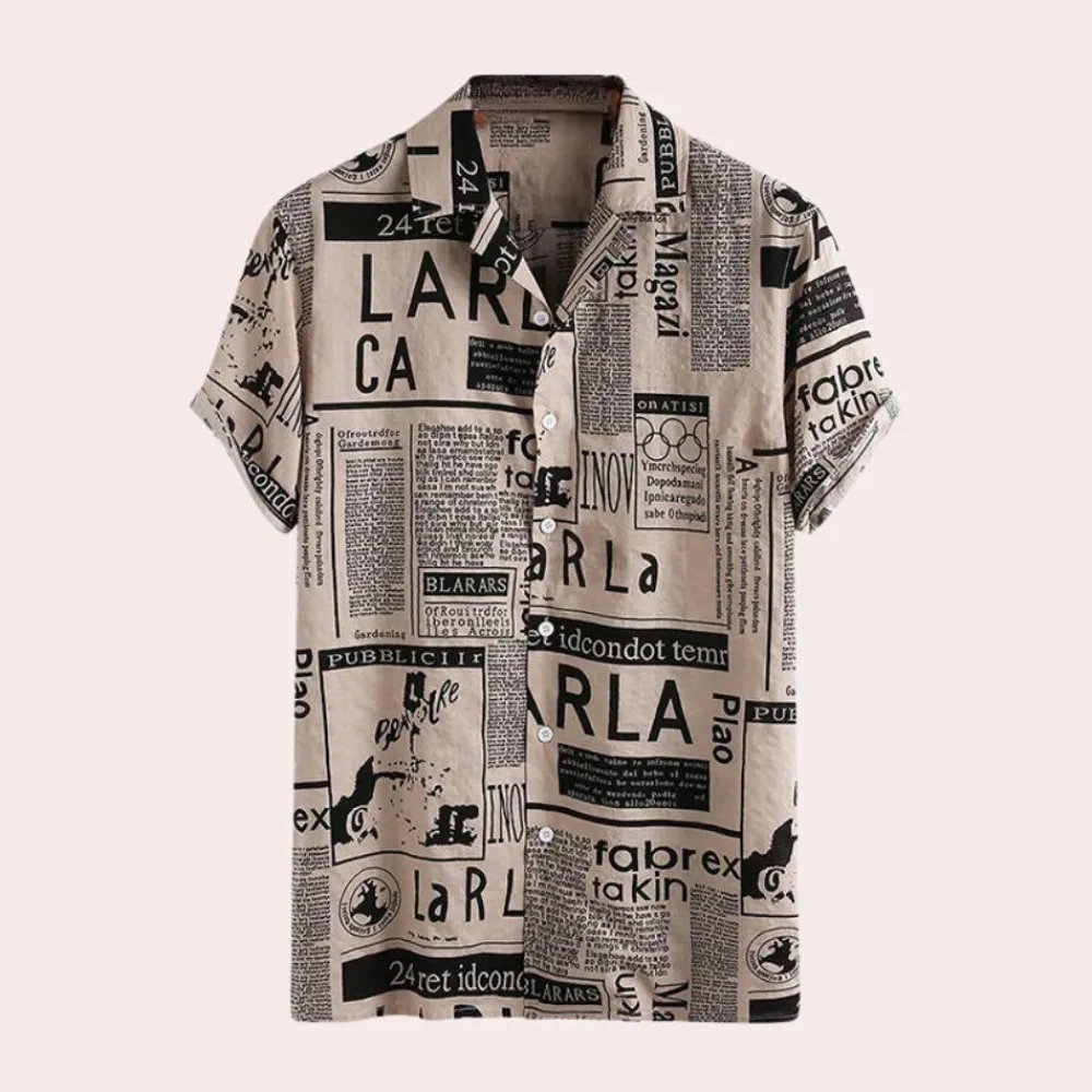 Shirts Heren*Bartosz – Modern herenoverhemd met krantenprint voor de zomer Khaki