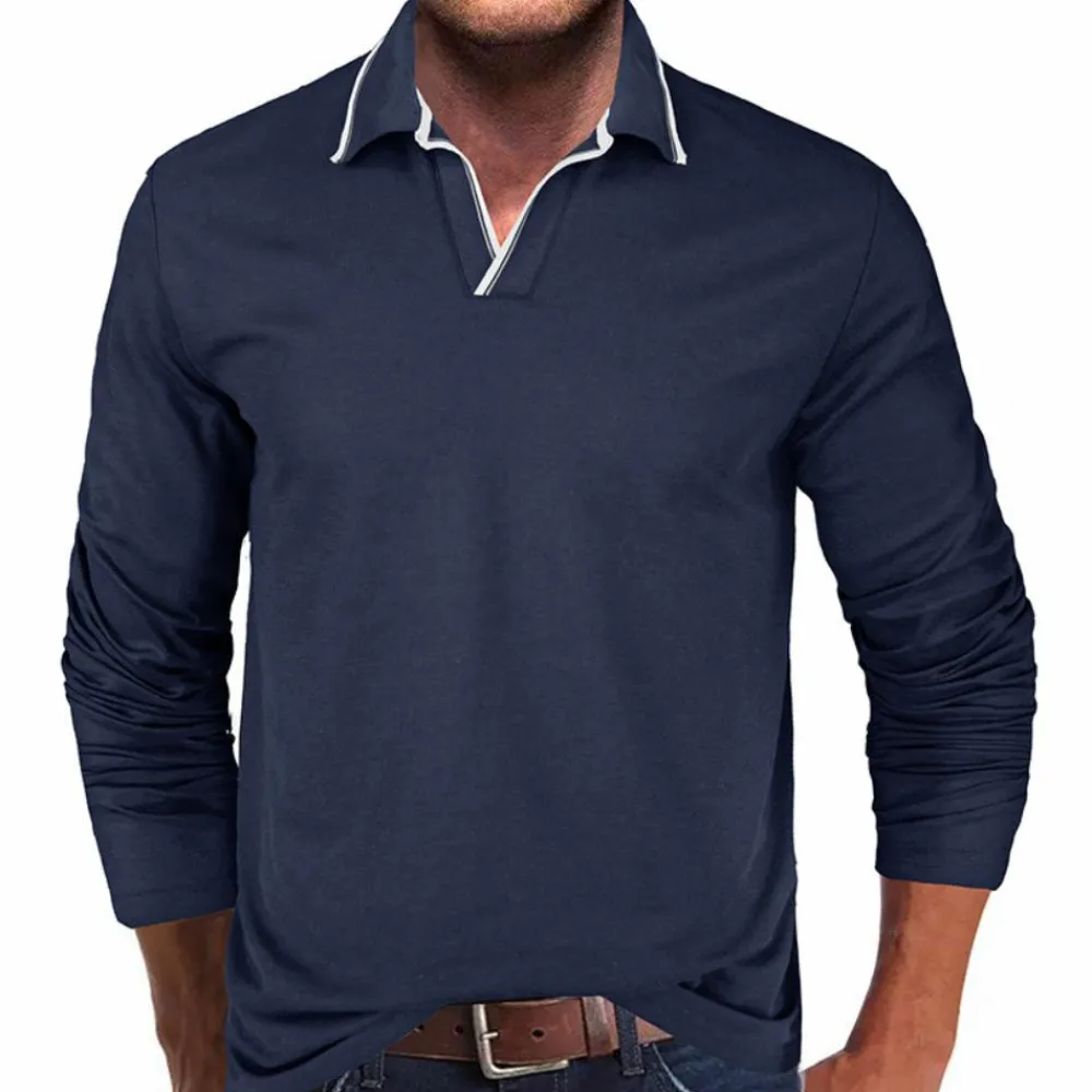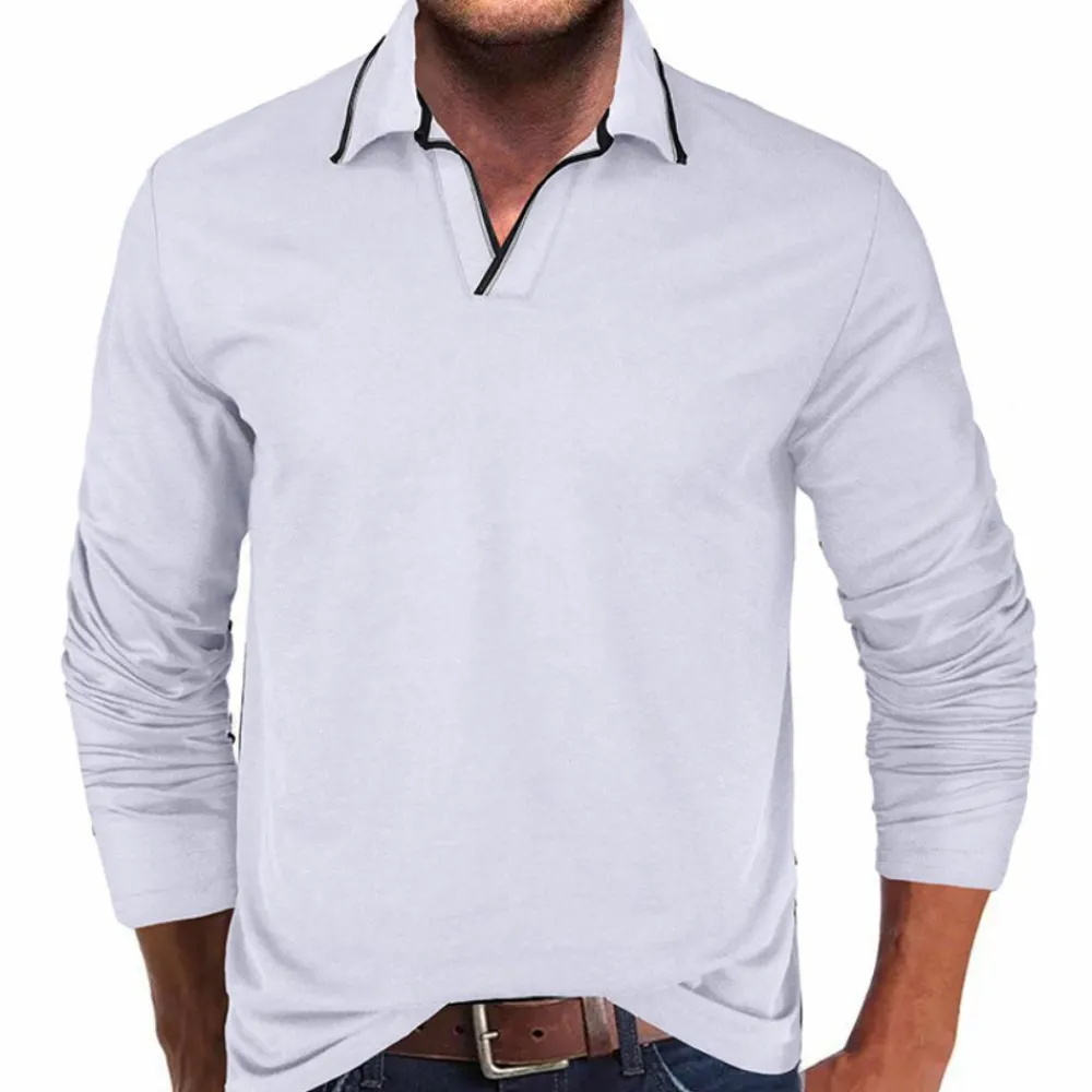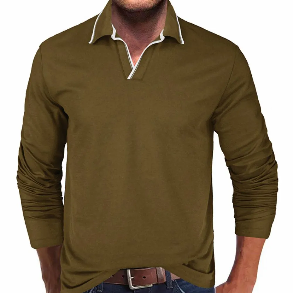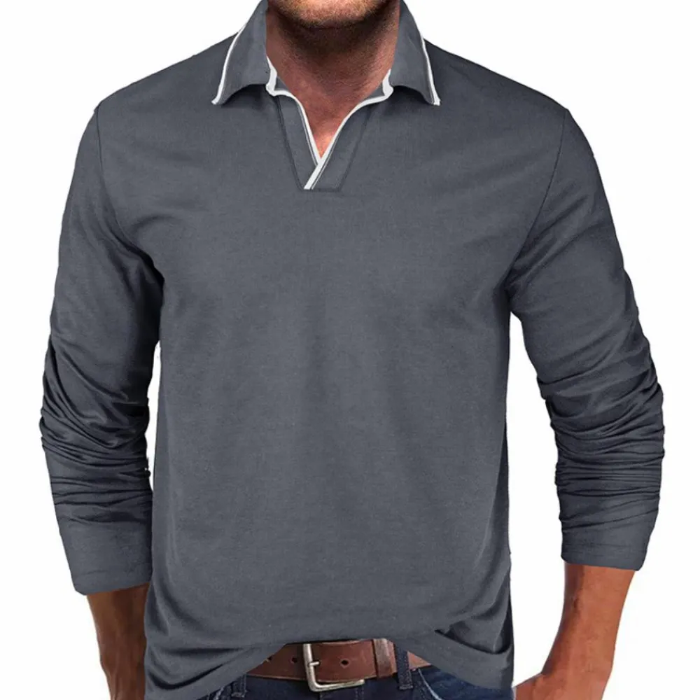 Het stijlvolle V-hals ontwerp en de lange mouwen maken het geschikt voor verschillende gelegenheden, van kantoor tot casual uitjes. Dit T-shirt is verkrijgbaar in verschillende kleuren en maten en biedt de ideale pasvorm voor elke man. Perfect om elke dag te dragen, ongeacht het weer.