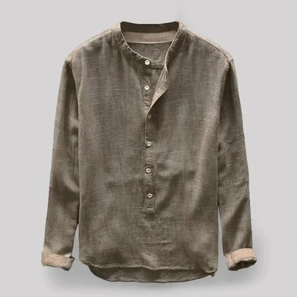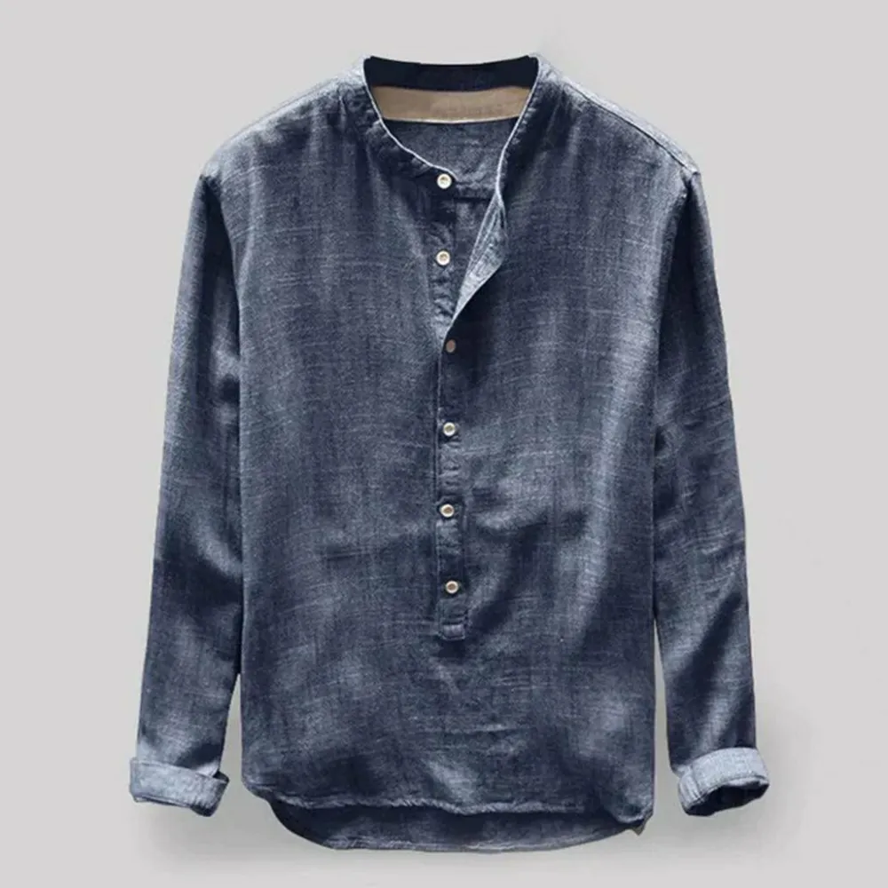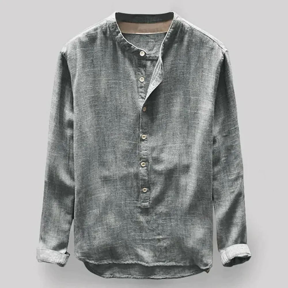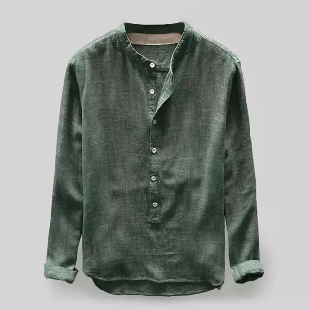 Casual henley kraag shirts, mandarijn kraag, eenvoudige stijl, effen kleur, slanke pasvorm, lange mouwen (kunnen worden opgerold), knoopsluiting, afgeronde zoom, knoopsluiting.