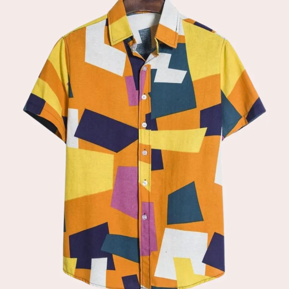 Hier is het Manfred Herenoverhemd met elegante geometrische print. Dit shirt biedt zowel comfort als stijl, geschikt voor een uitje of gewoon voor een relaxte dag op de bank. Het shirt is gemaakt van een comfortabele stof die perfect is voor de lente, herfst en winter.