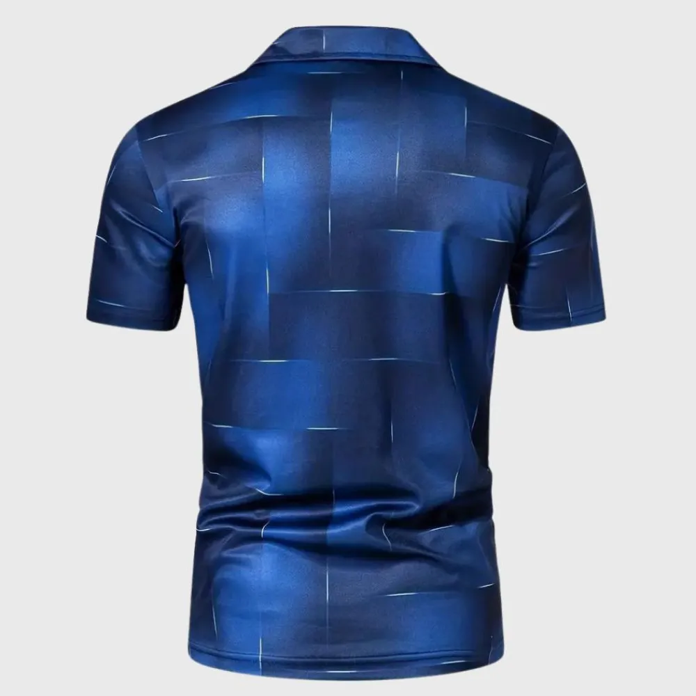 Het Omer heren polo shirt met print, knopen en korte mouw is precies wat je nodig hebt. Verkrijgbaar in de kleuren zwart, grijs, donkerblauw en rood, dit heren combineert moeiteloos stijl en functionaliteit.
