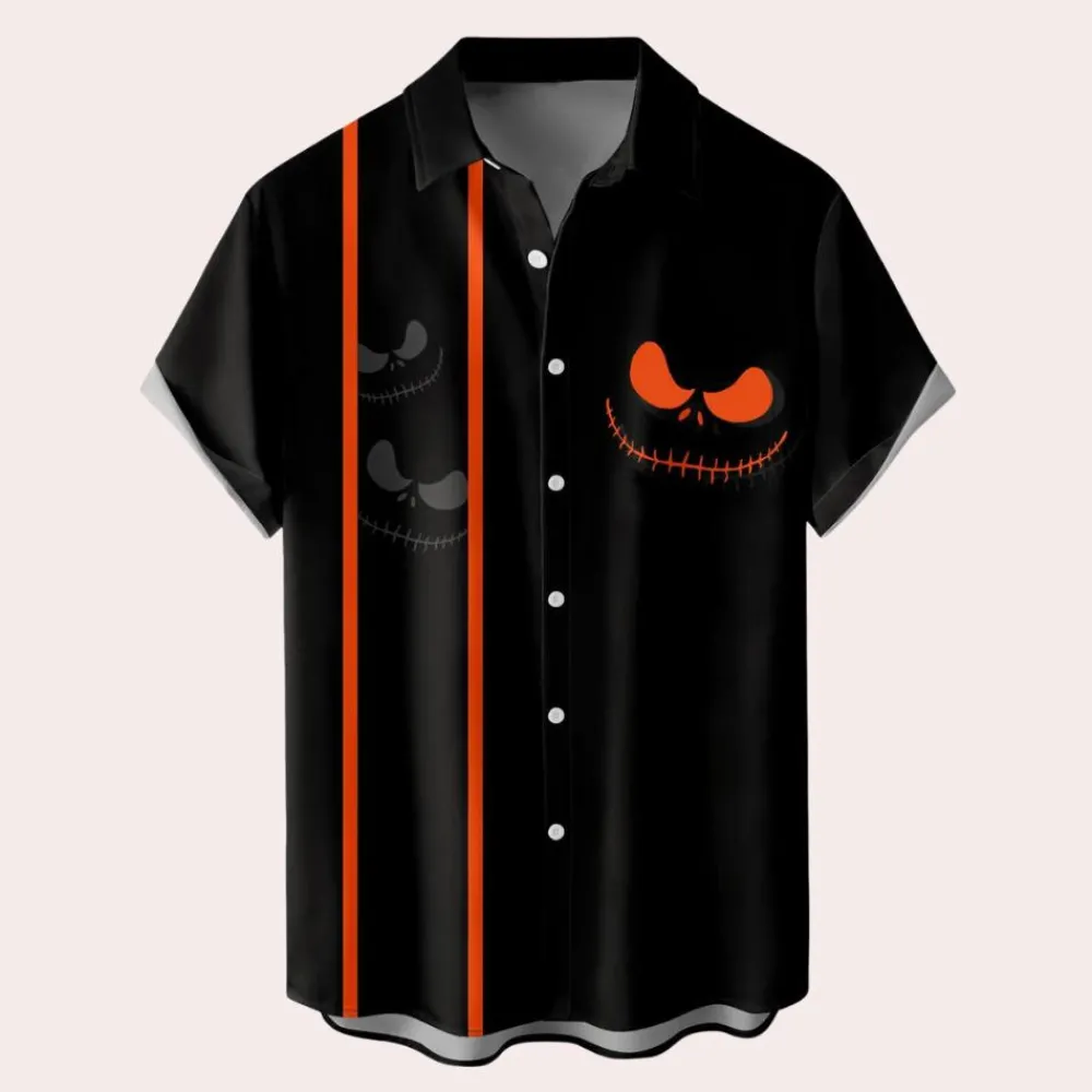 Verhoog je Halloween-stijl met het Orban Klassieke Halloween Button-Down Shirt voor heren