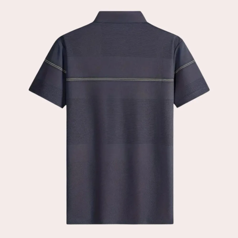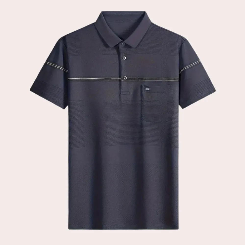 Hier heb je onze Stijlvol gestreept herenpoloshirt, Dit shirt is zowel comfortabel als stijlvol voor uitgaan, maar ook voor thuis op de bank. Dit shirt is gemaakt van een comfortabele stof die geschikt is voor de lente, herfst en winter.