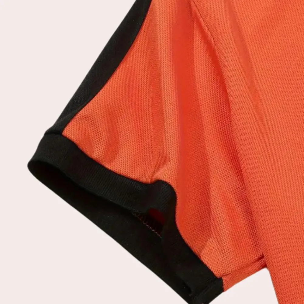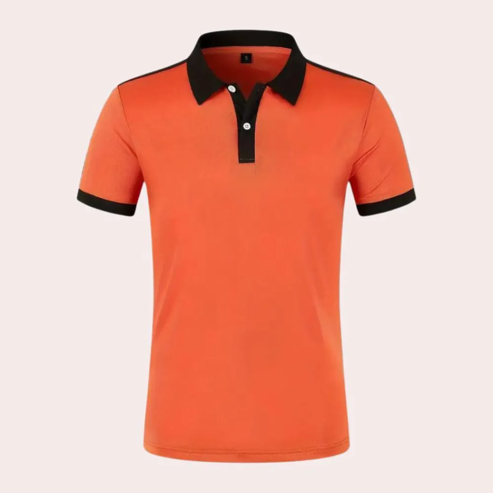 Hier heb je onze Fergal Stijlvol oranje herenpoloshirt. Dit shirt is zowel comfortabel als stijlvol voor uitgaan, maar ook voor thuis op de bank. Dit shirt is gemaakt van een comfortabele stof die geschikt is voor de lente, herfst en winter.