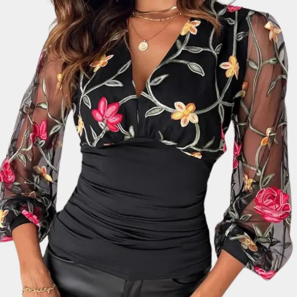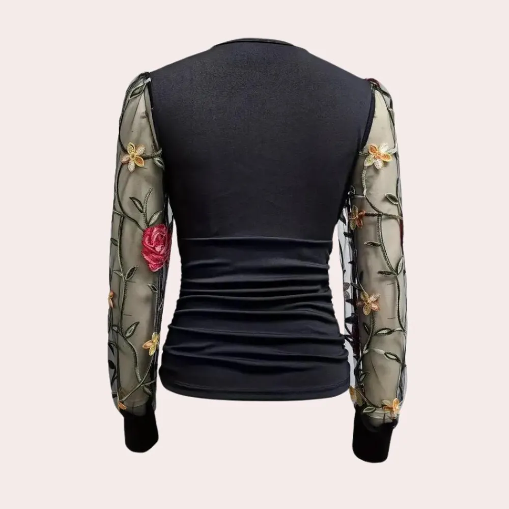 Perfect voor speciale gelegenheden of als expressie van je individuele stijl. Voel je zelfverzekerd en betoverend – Elegante damestop met bloemenborduursel is meer dan alleen een kledingstuk, het is een statement!