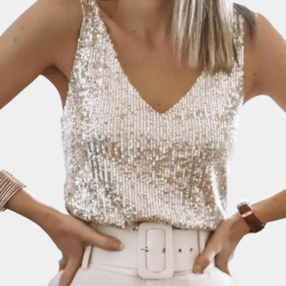 Ontdek de Elegante damestop met glitter. Voeg een vleugje glamour toe aan je look met deze prachtige top, perfect voor elke gelegenheid.