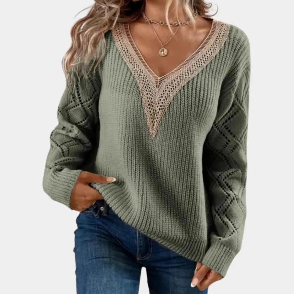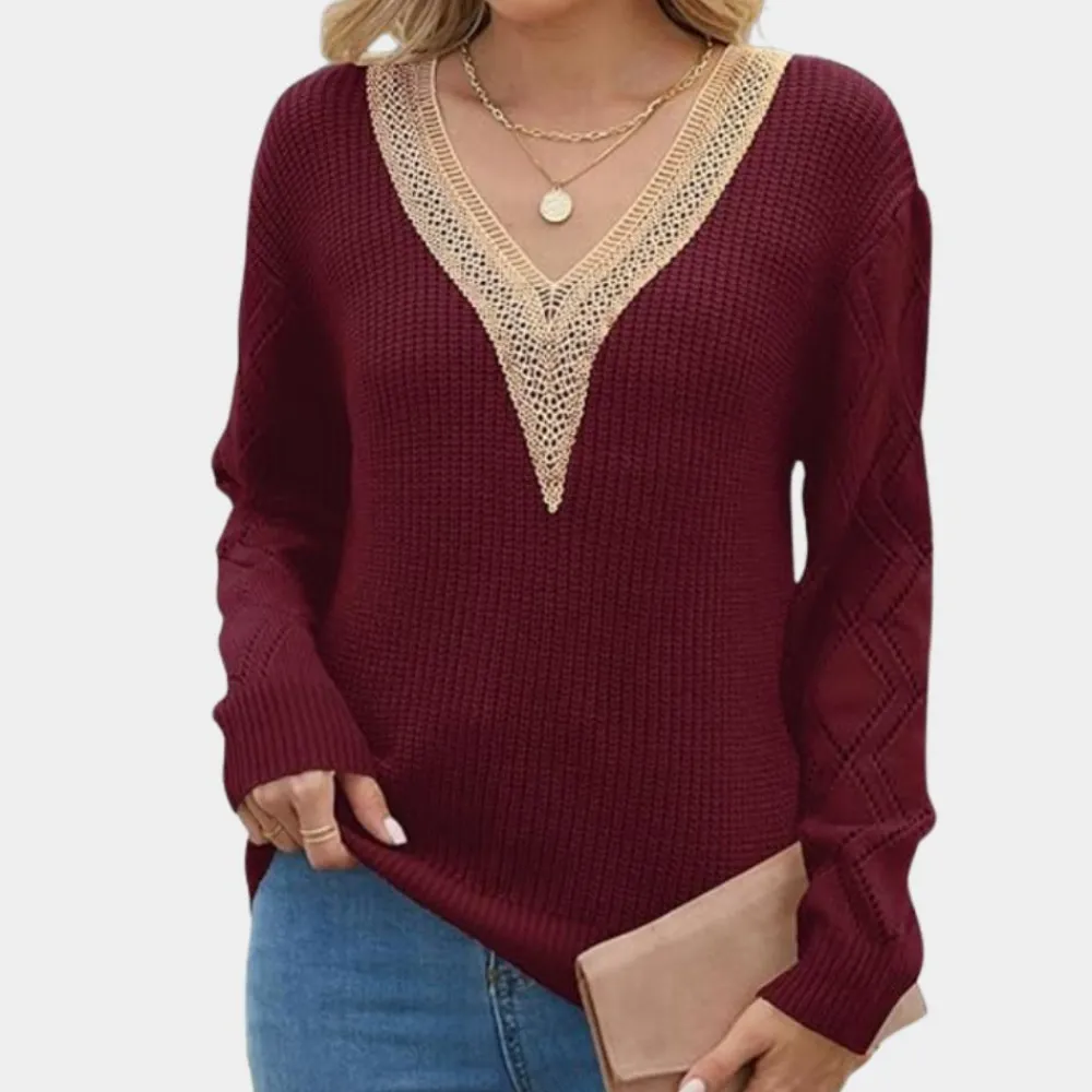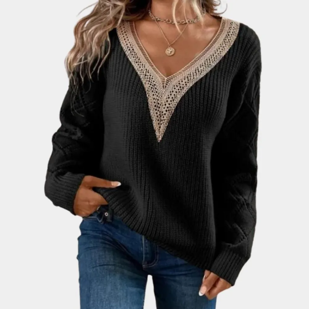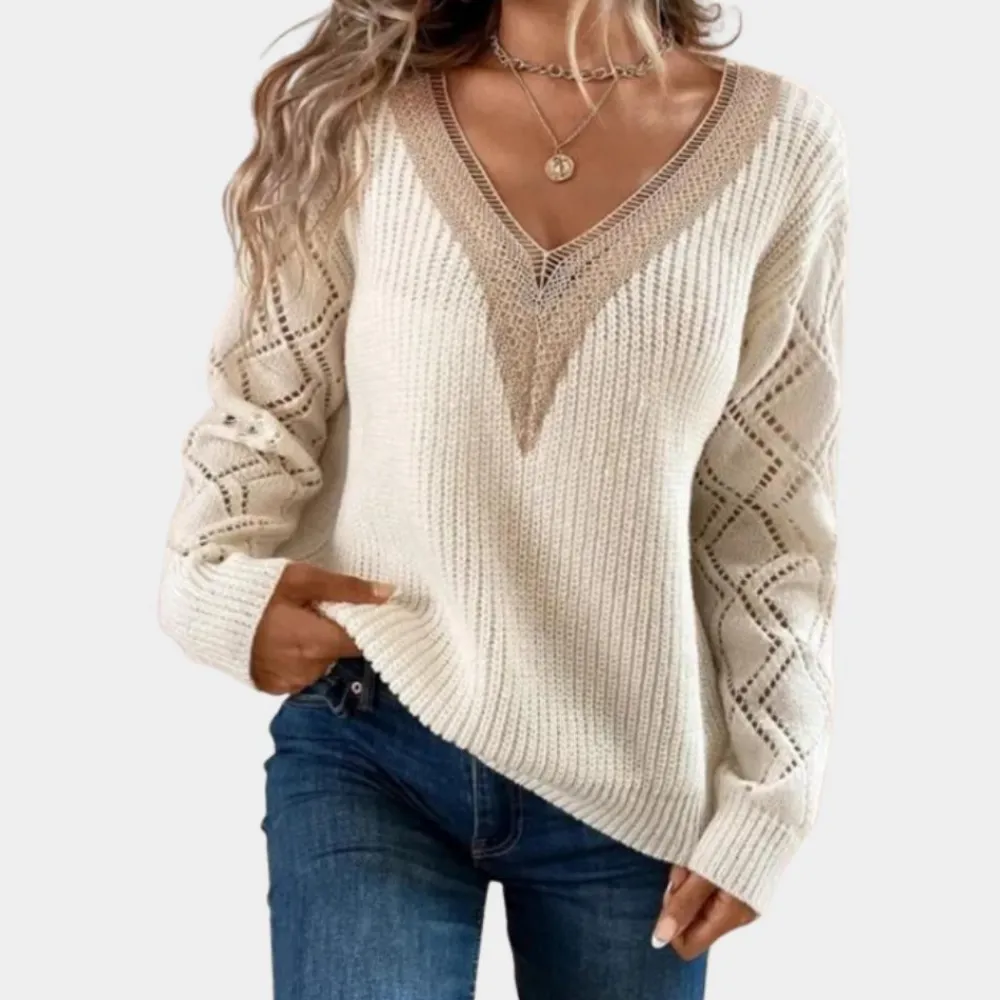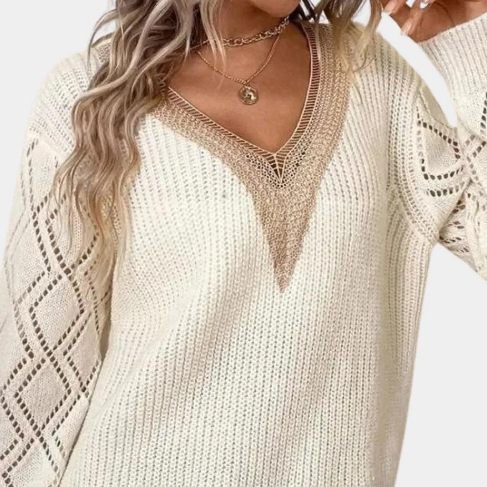 Ervaar de perfecte combinatie van romantiek en elegantie met onze Gebreide damestop met lange mouwen. Het delicate witte kant voegt een vrouwelijke touch toe aan elke outfit. Ideaal voor speciale gelegenheden of als elegante alledaagse look.
