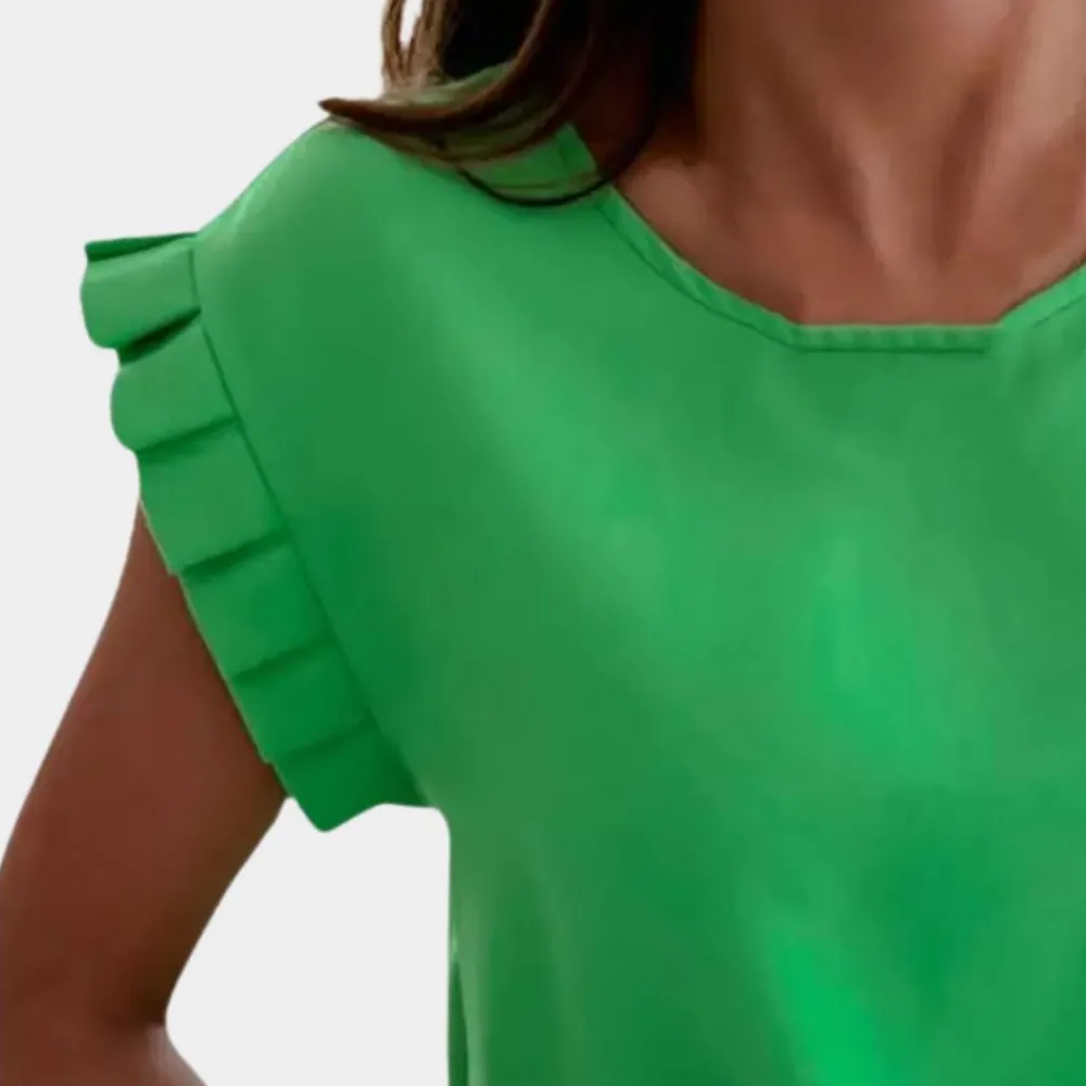 Deze Trendy damesblouse straalt een speelse vibe uit met zijn fladdermouwontwerp en is gemaakt van eersteklas kwaliteit stof, waardoor het een mix is van charme en comfort. Dit is een top die gemakkelijk te combineren is met alle casual garderobes.