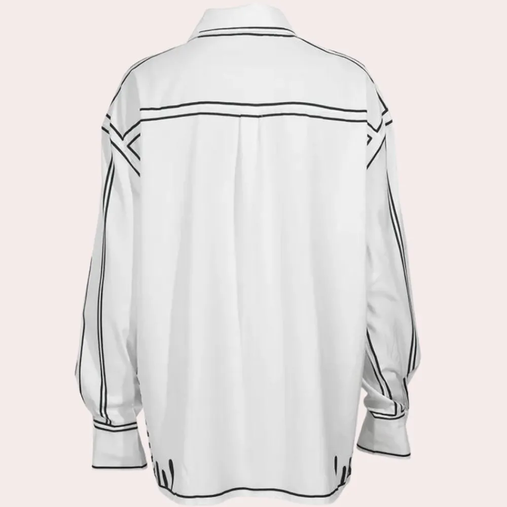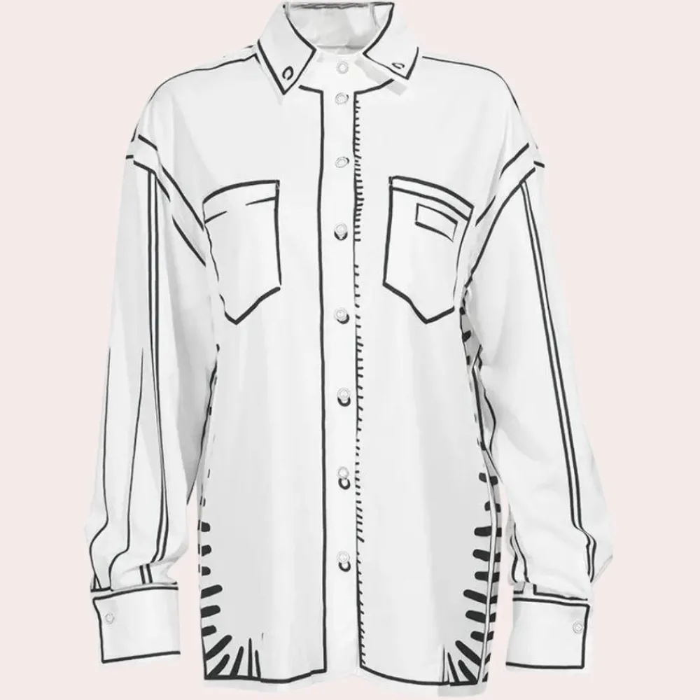 Ontmoet Zenobia, een relaxed, bedrukt langarmshirt voor vrouwen.