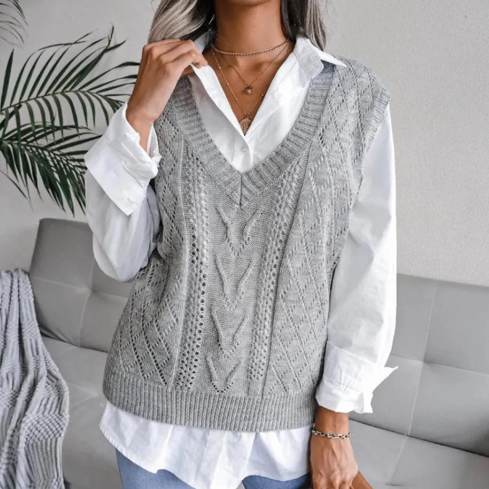 Arlette Dames V-hals Gebreid Vest: Elegante Laagjes voor Lente en Herfst!