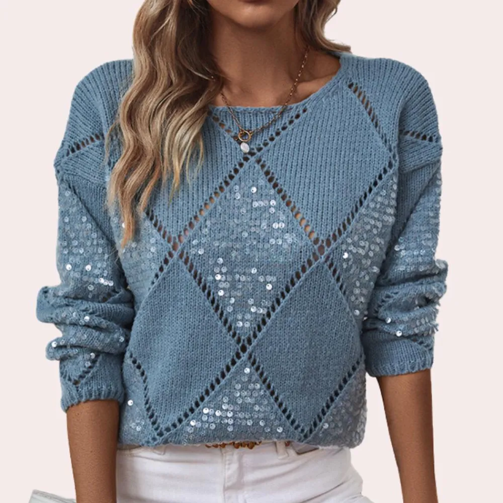 AZLYN – Geraffineerde Trui Met Pailletten voor Dames is ontworpen om moeiteloos luxe toe te voegen aan je garderobe. Dankzij de glanzende details is deze trui ideaal om op te vallen tijdens informele bijeenkomsten, avonden uit of speciale evenementen.