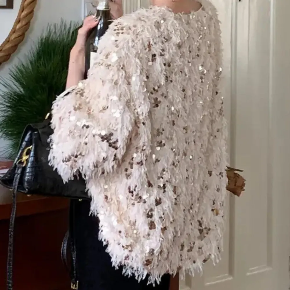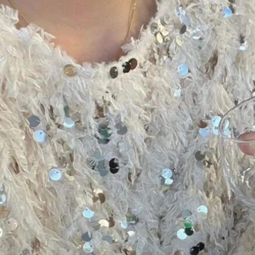 De ontspannen pasvorm en flatterende snit zijn perfect om te combineren met zowel jeans als rokken, terwijl de glinsterende details een vleugje glamour toevoegen voor speciale gelegenheden of een avondje uit.