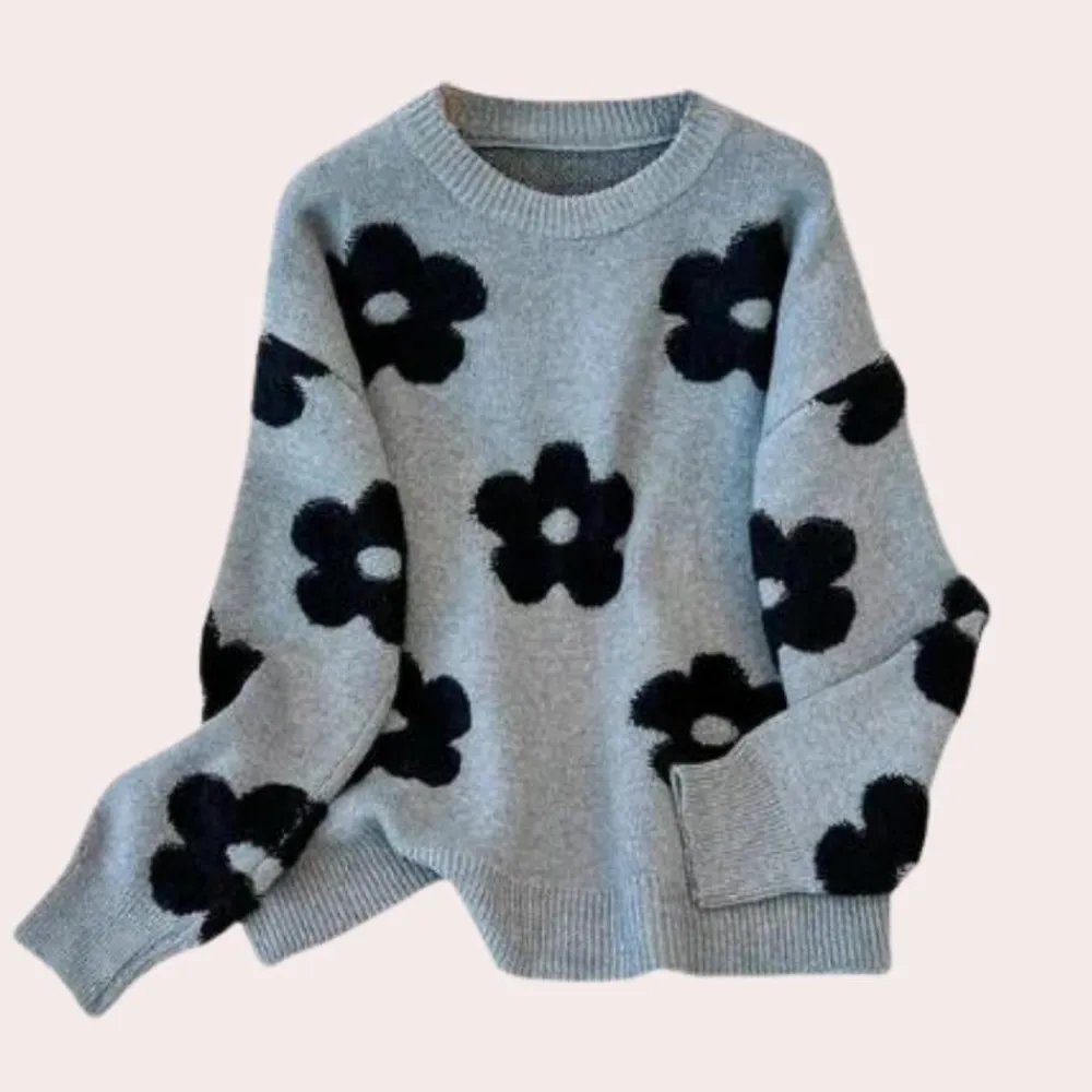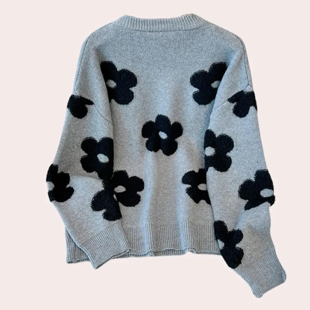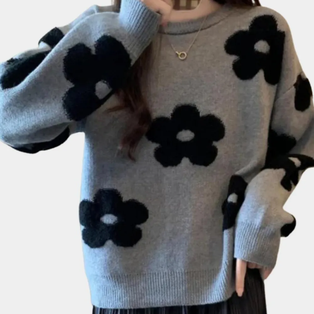 Verhoog je stijl met de Celina Weelderig Comfort Damesgebreide Trui: luxe comfort ontmoet bloemige elegantie!