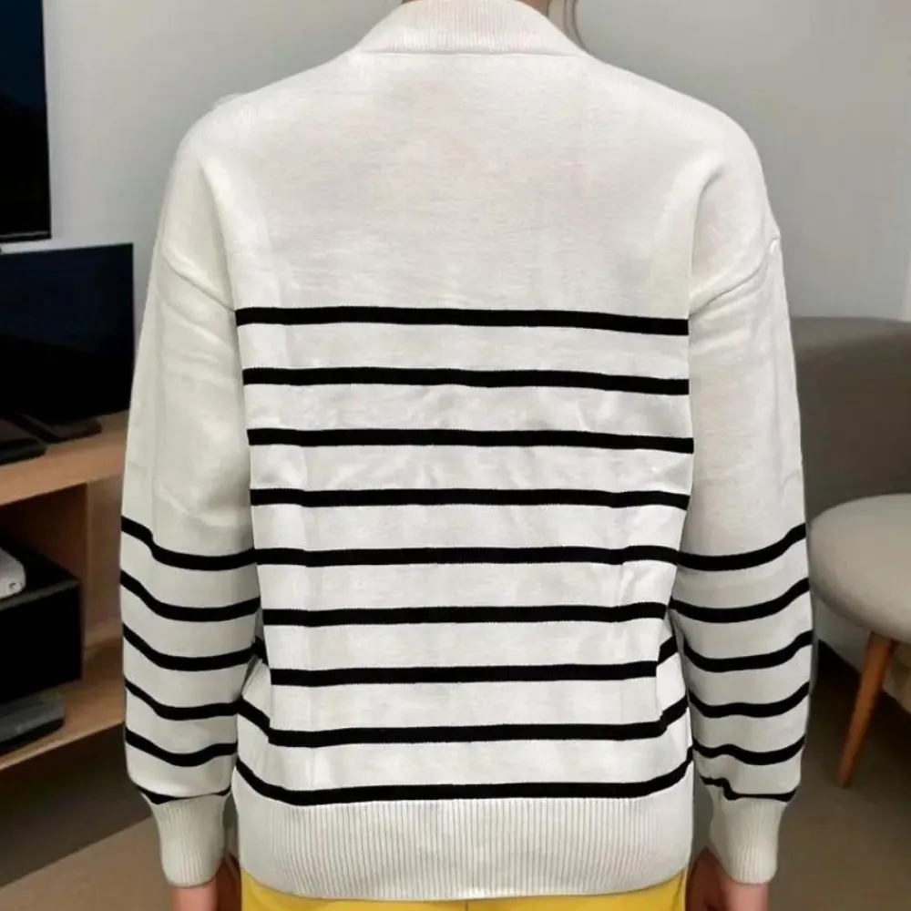 De hoge kraag en lange mouwen zorgen voor extra warmte, terwijl het gestreepte patroon een moderne, frisse look toevoegt. Gemaakt van duurzame polyestervezel is deze trui geschikt voor dagelijks gebruik in de lente, herfst en winter.