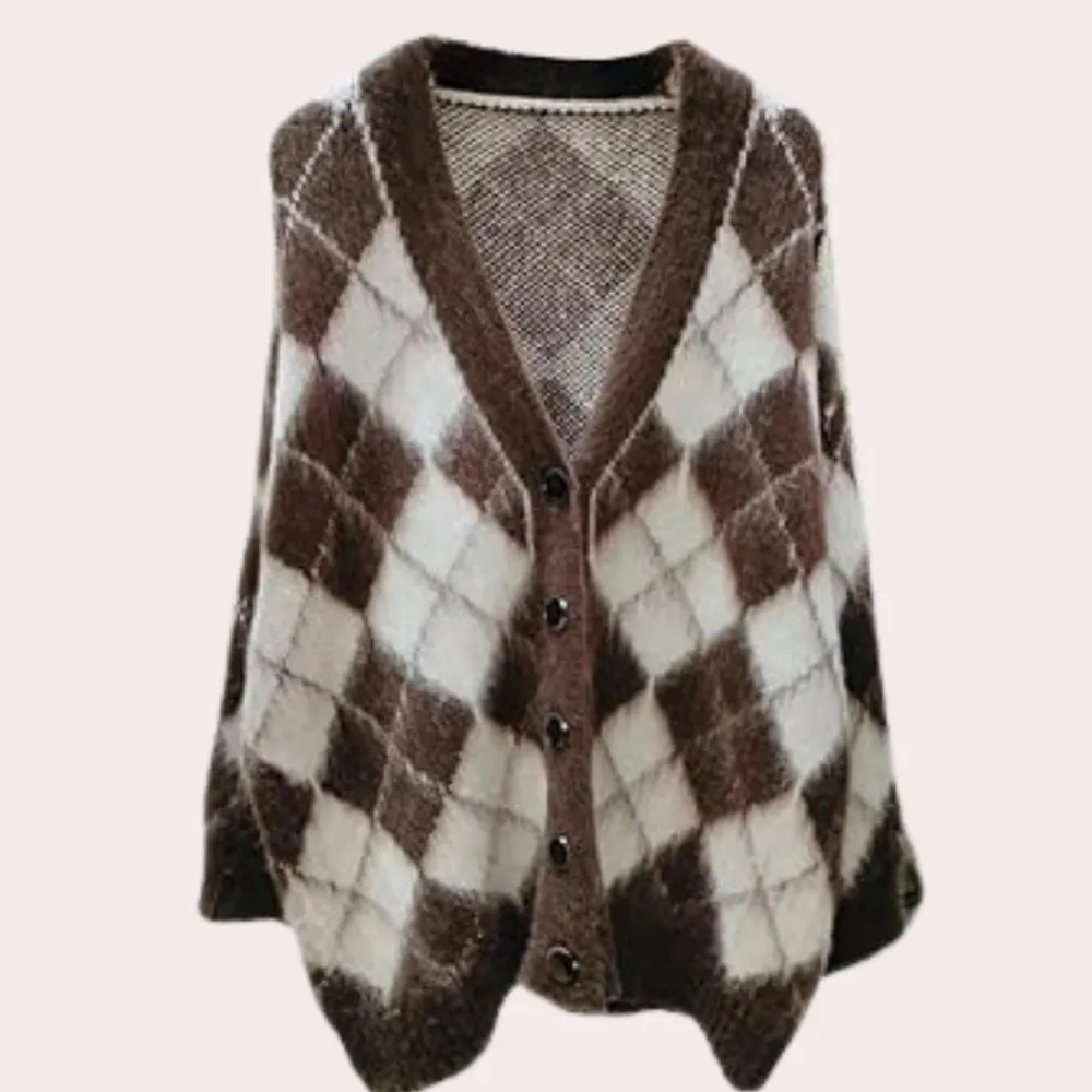 Deze cardigan, met een tijdloos ruitpatroon en een moderne uitstraling, is ideaal voor wie houdt van zowel mode als comfort.