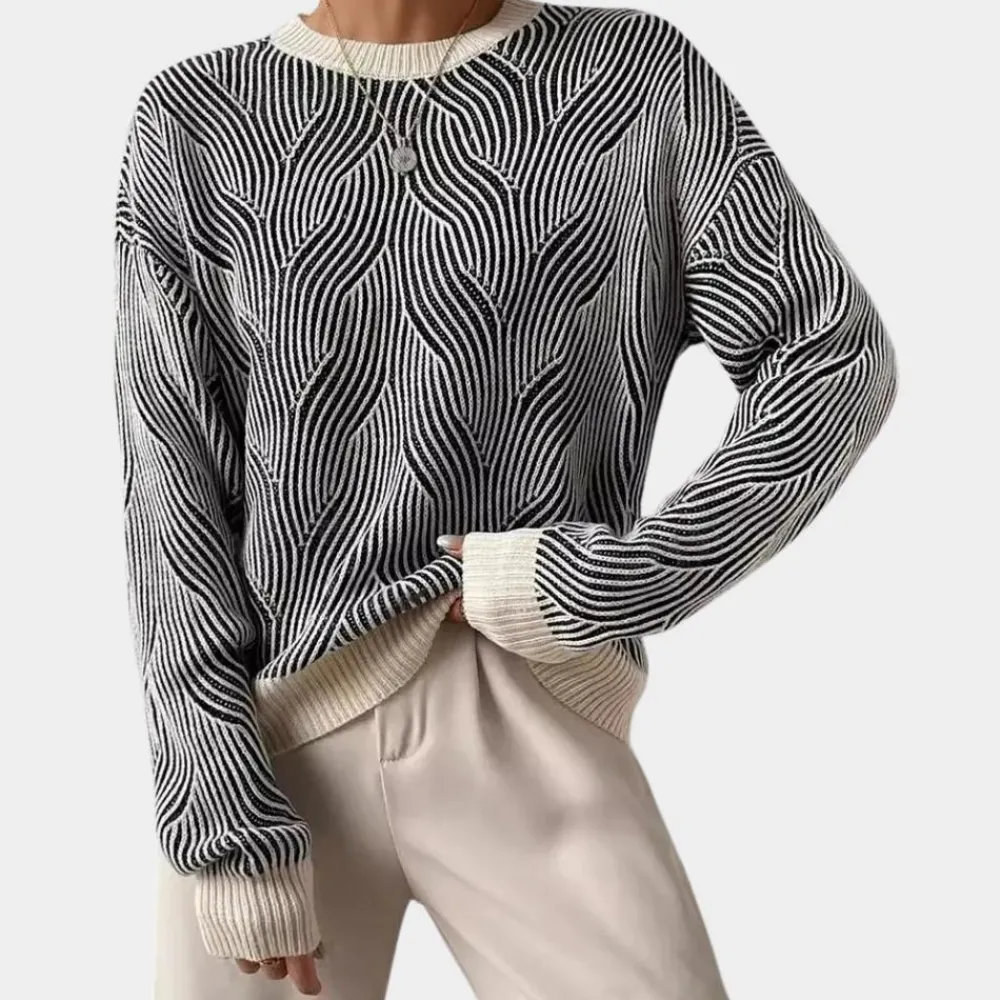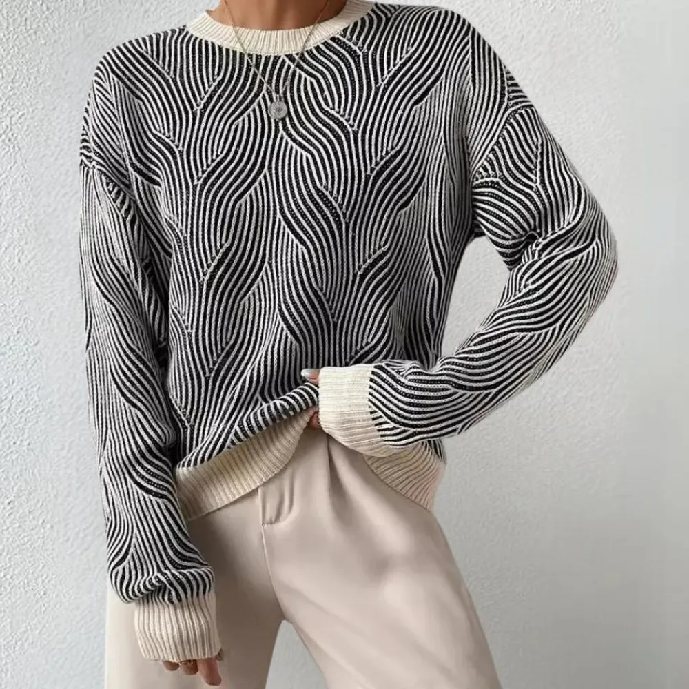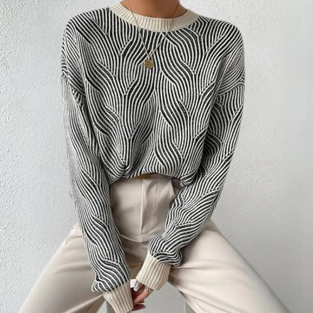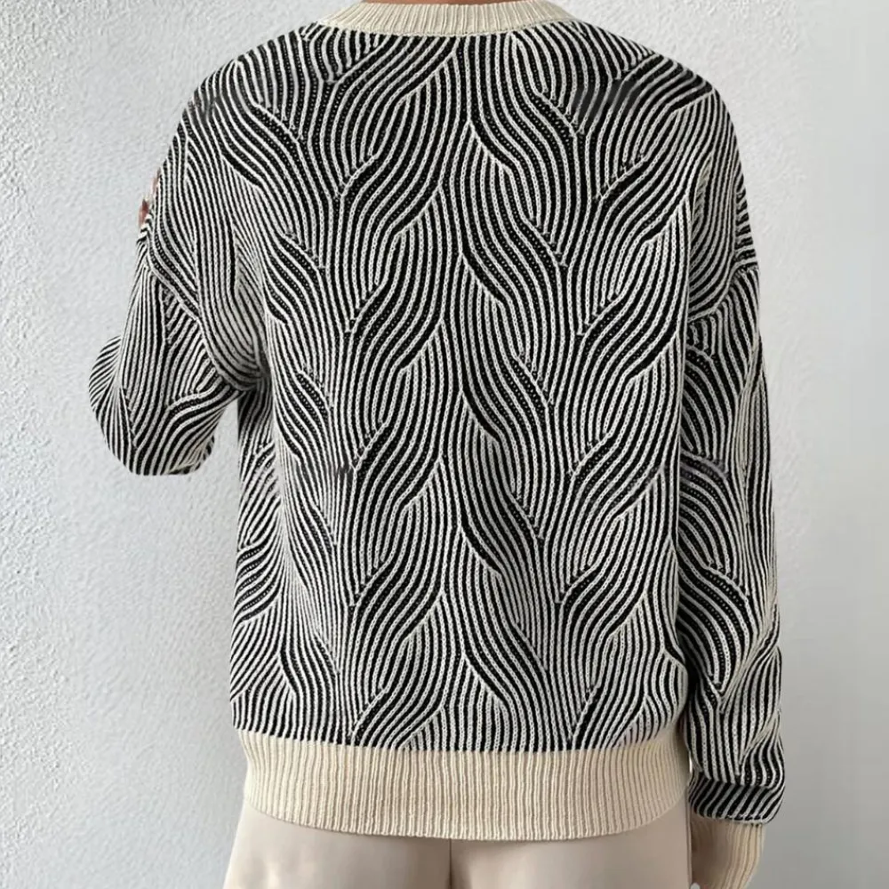 Stijlvol Ontwerp: De verfijnde structuur en het unieke breipatroon zorgen ervoor dat je er altijd goed uitziet in deze trui.
