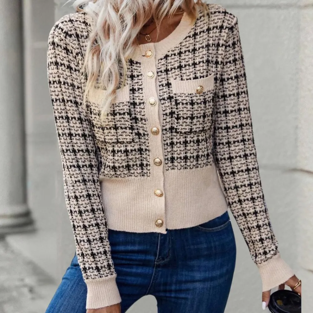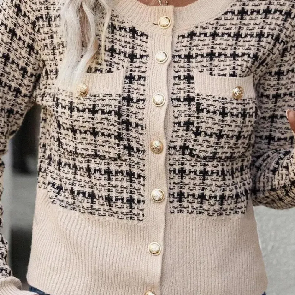 Deze Fionnuala Gracieus gebreid vest voor dames combineert stijl en functionaliteit, ideaal voor koelere dagen. De klassieke ruitprint geeft een elegante uitstraling, en met de lange mouwen blijf je comfortabel bedekt. Een perfecte aanvulling op je garderobe voor elk seizoen.