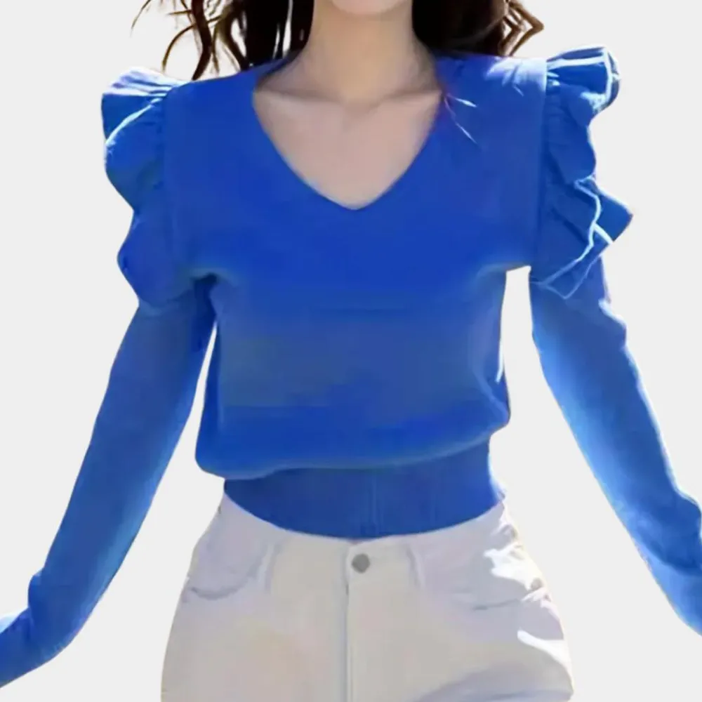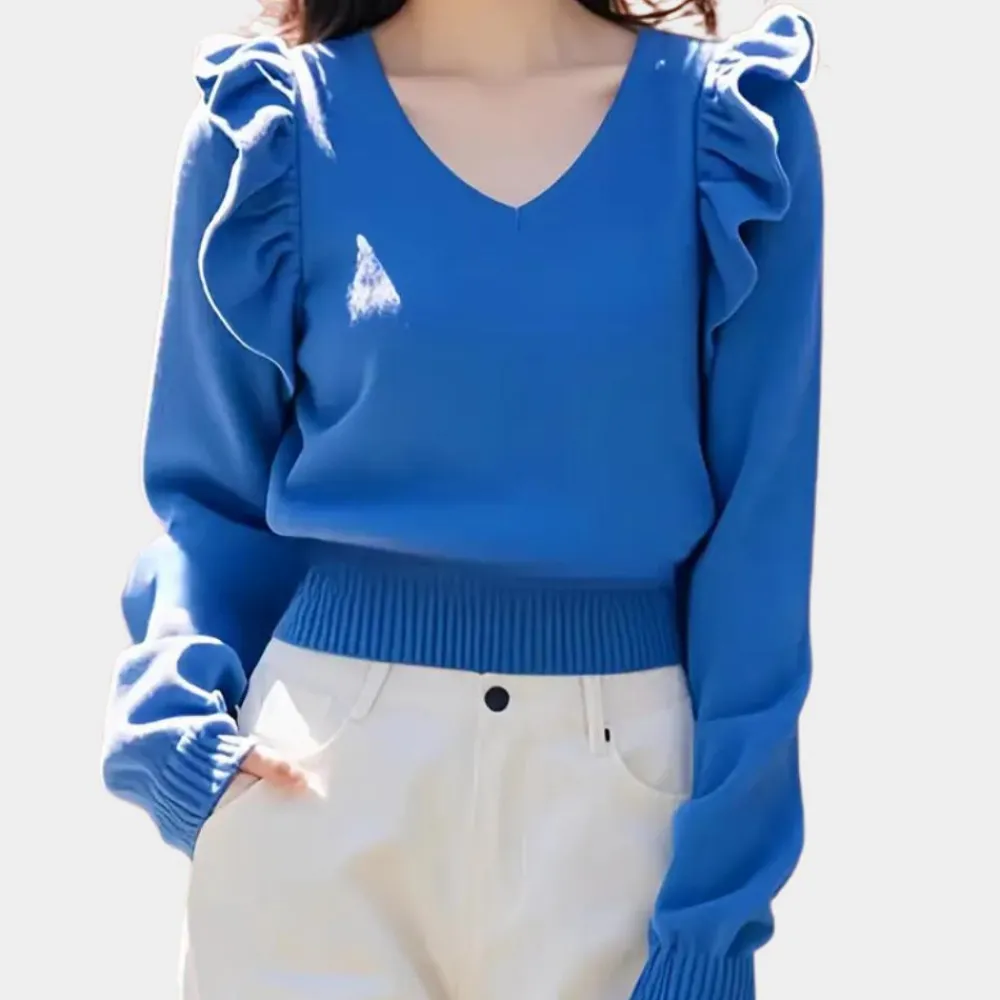 De GIULIETTA – Casual Trui voor Dames is een perfecte combinatie van vrouwelijkheid en verfijning, dankzij de subtiele gerimpelde details.
