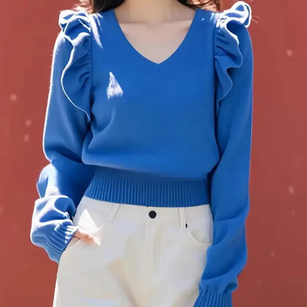 Stijlvol ontwerp: De gerimpelde accenten tillen de klassieke trui naar een hoger niveau en zorgen voor een geraffineerde en modieuze look.