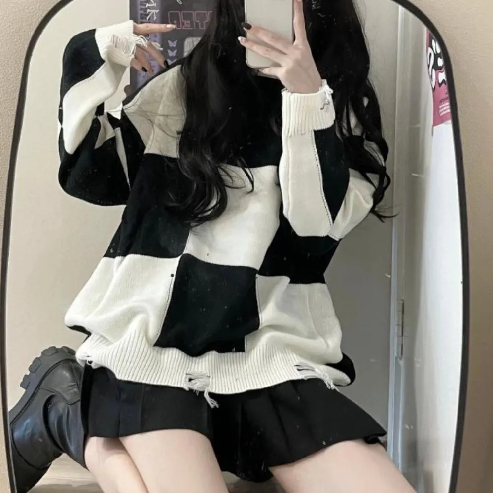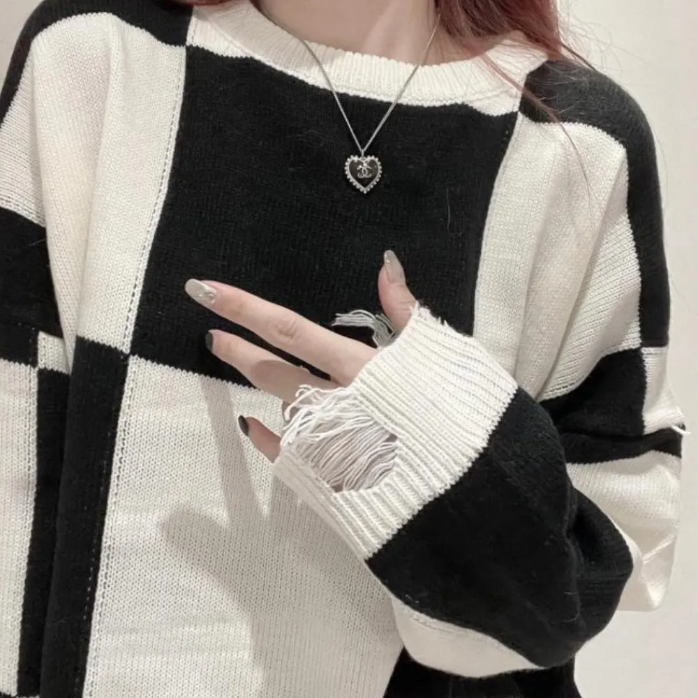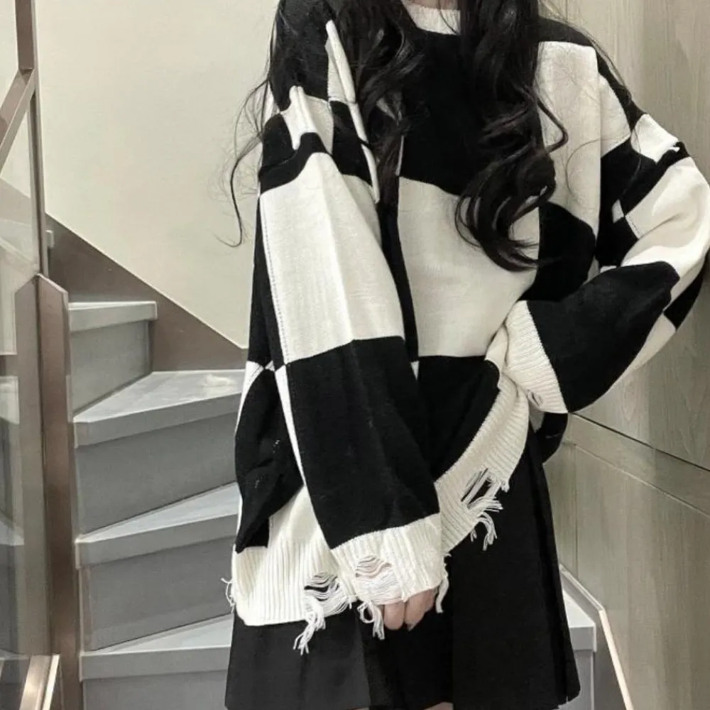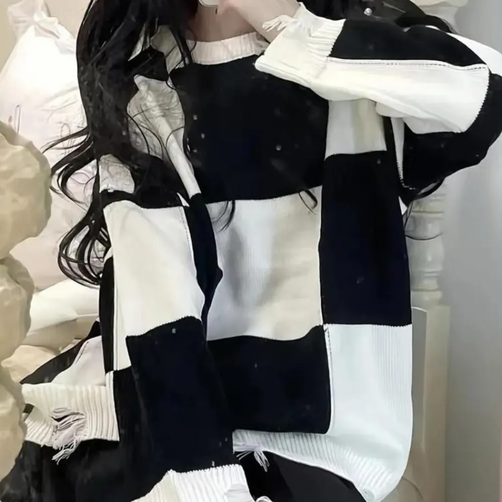 Onze Hollow – geruite lange trui voor dames combineert stijl en comfort.