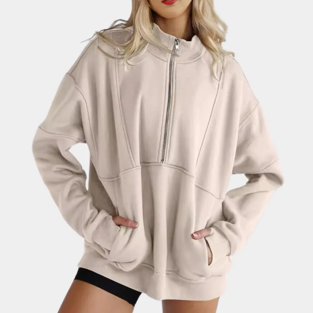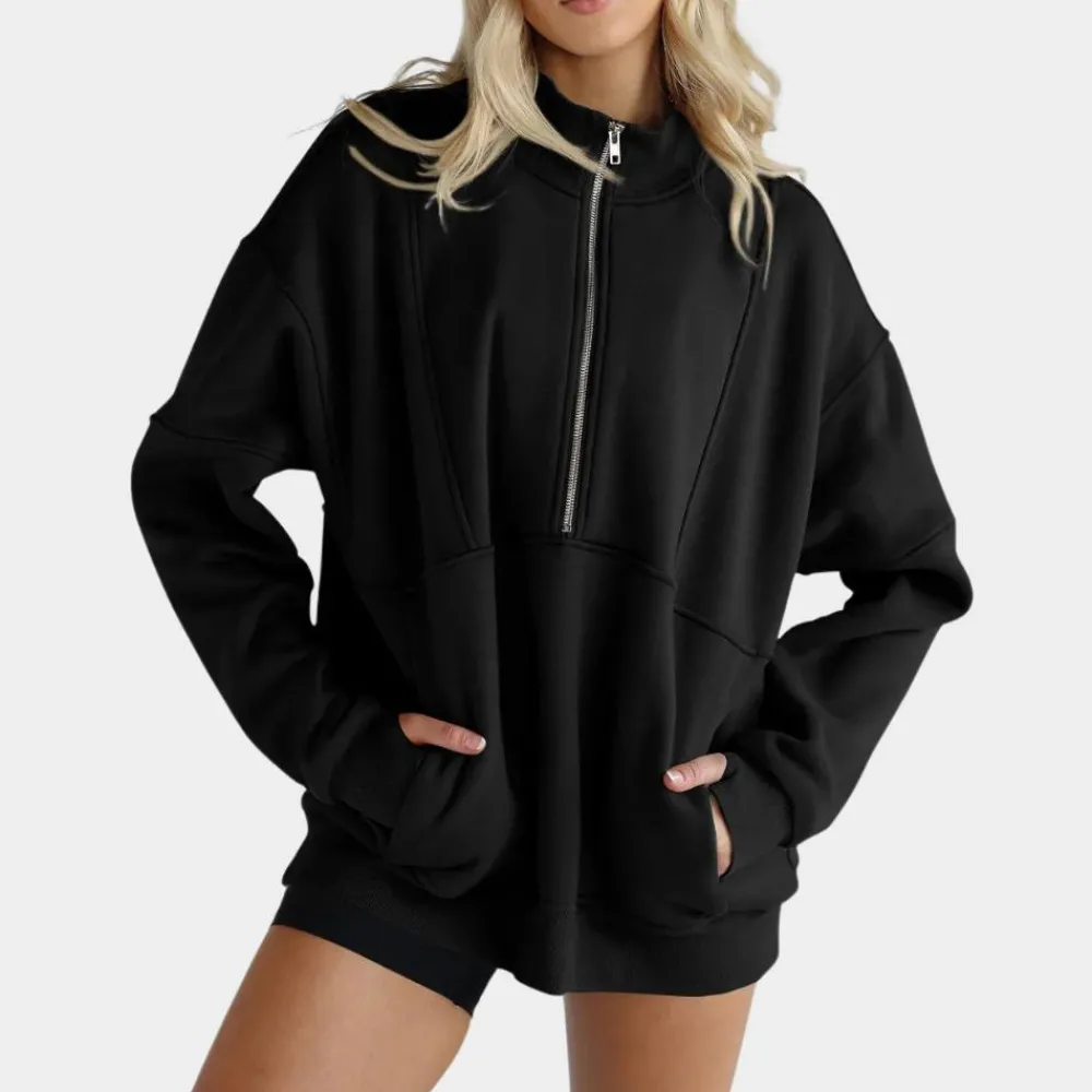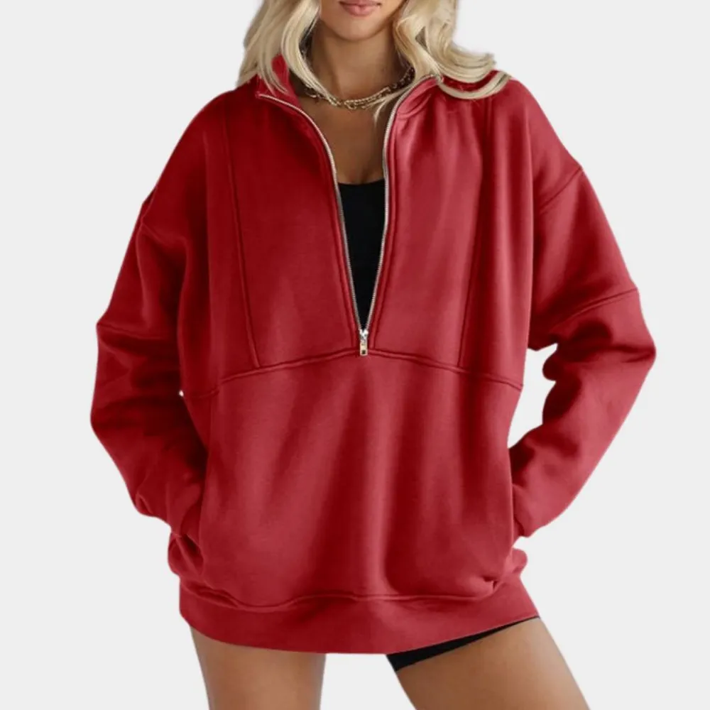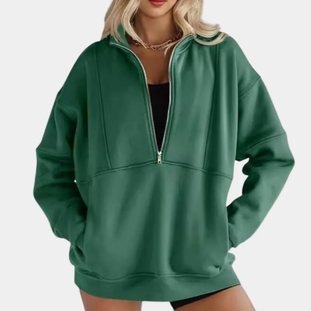 De JEMMA – Moderne Trui voor Dames is perfect voor wie op zoek is naar een veelzijdig en comfortabel kledingstuk voor elke gelegenheid. Met de handige halve rits kun je de halslijn van deze trui naar wens aanpassen, perfect voor zowel warmte als stijl als je een ander topje draagt.