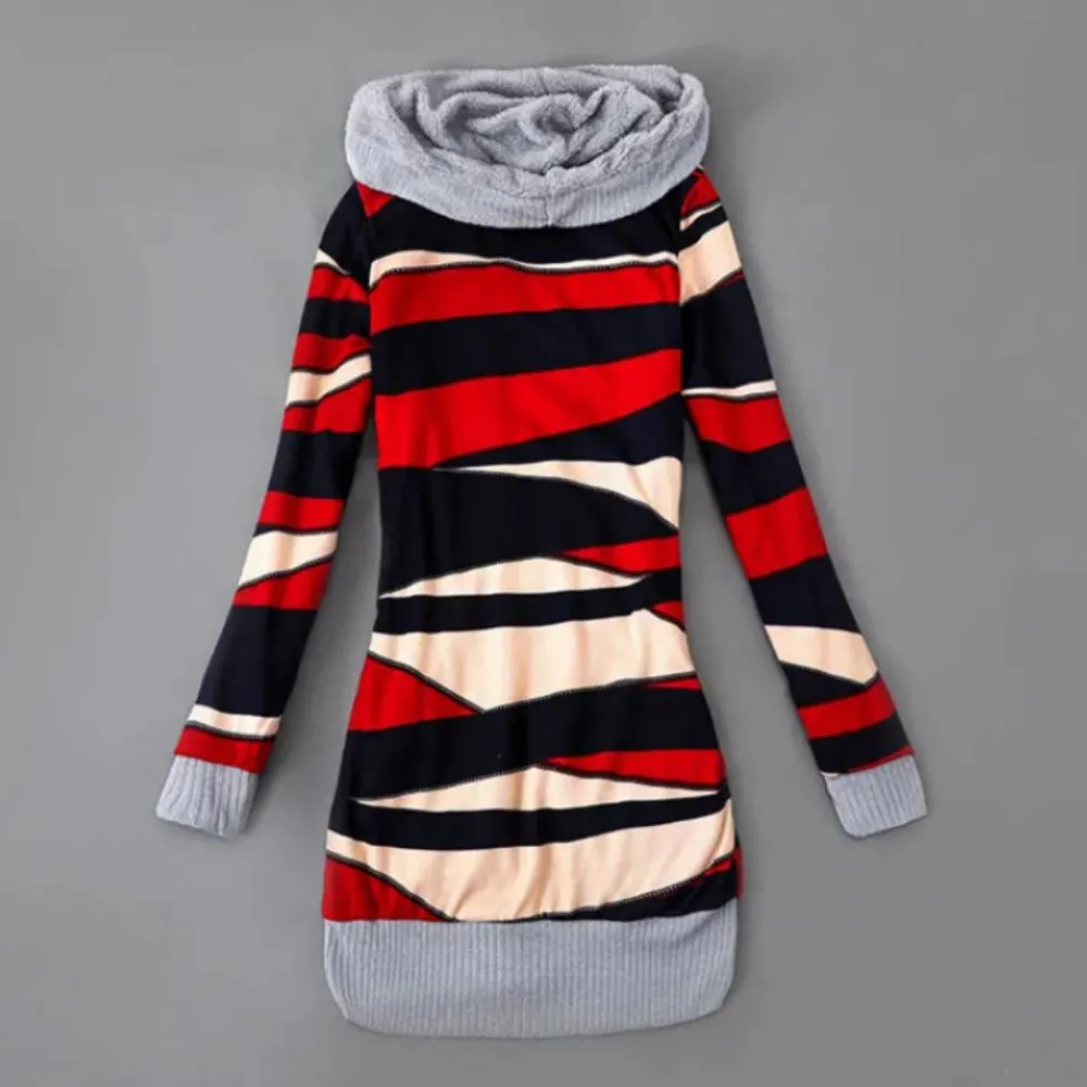 Deze middellange trui met capuchon biedt je alles wat je nodig hebt.
