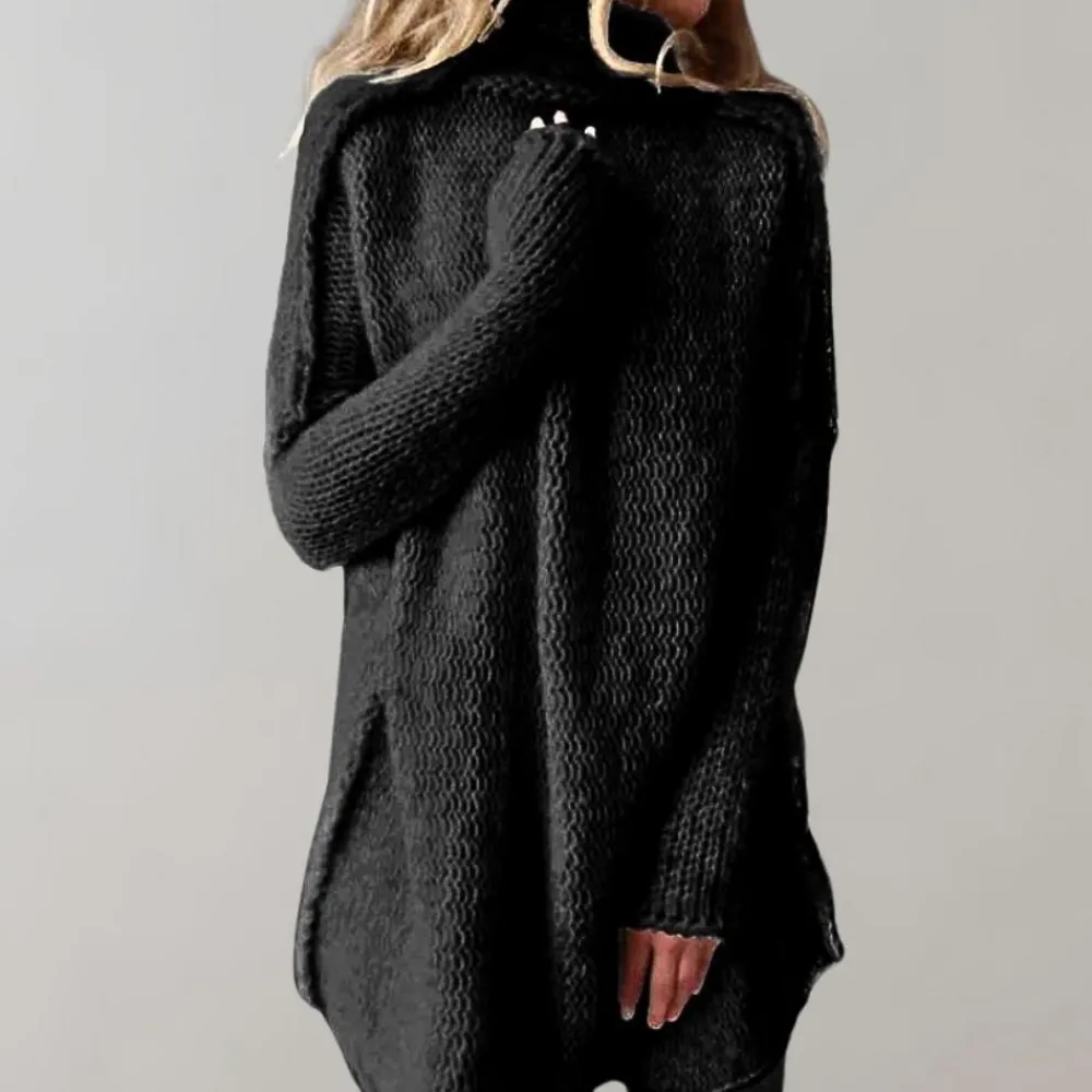 - Veelzijdig en Stijlvol: De lange snit maakt deze trui dames perfect om te dragen op verschillende gelegenheden, van een casual dagje uit tot een avondwandeling.