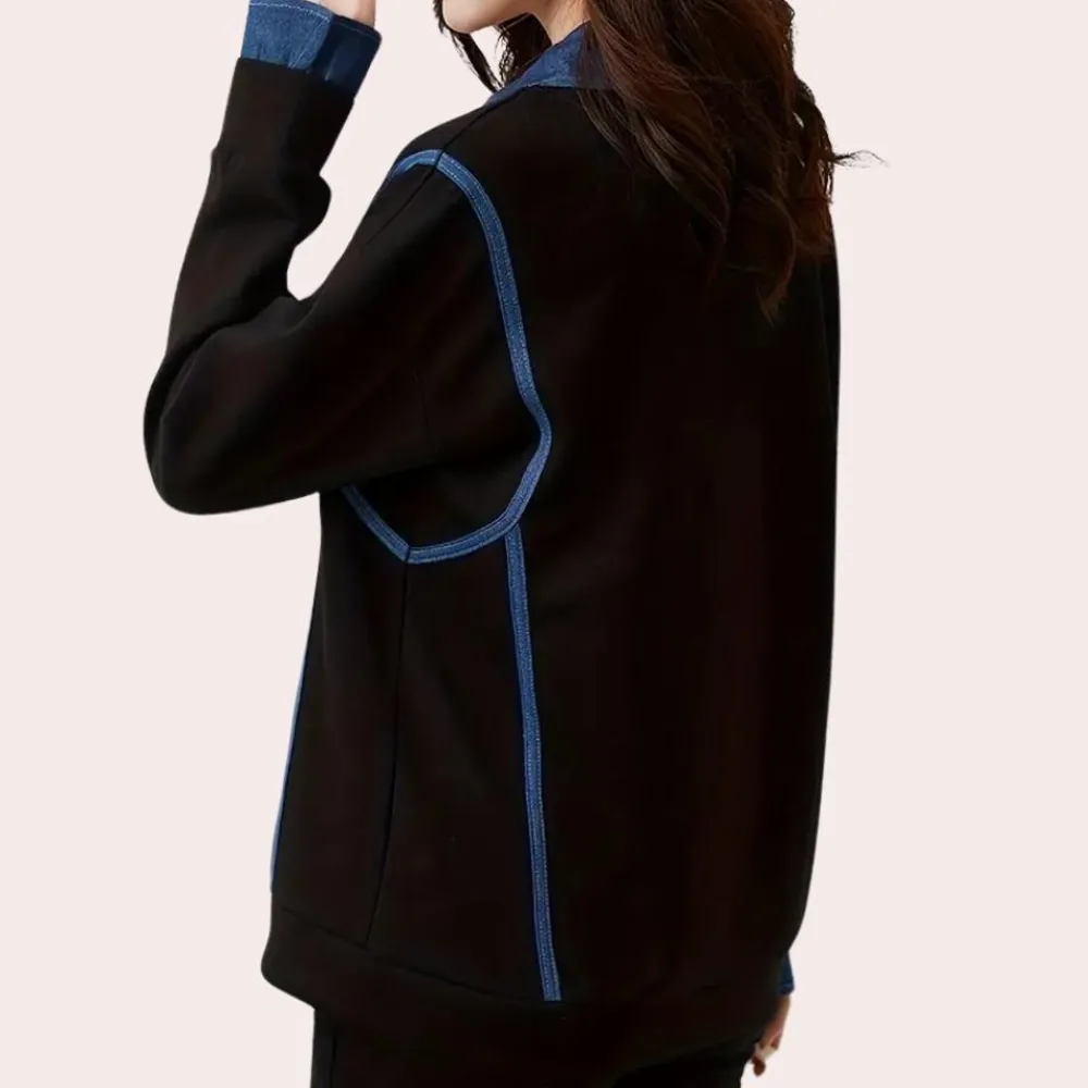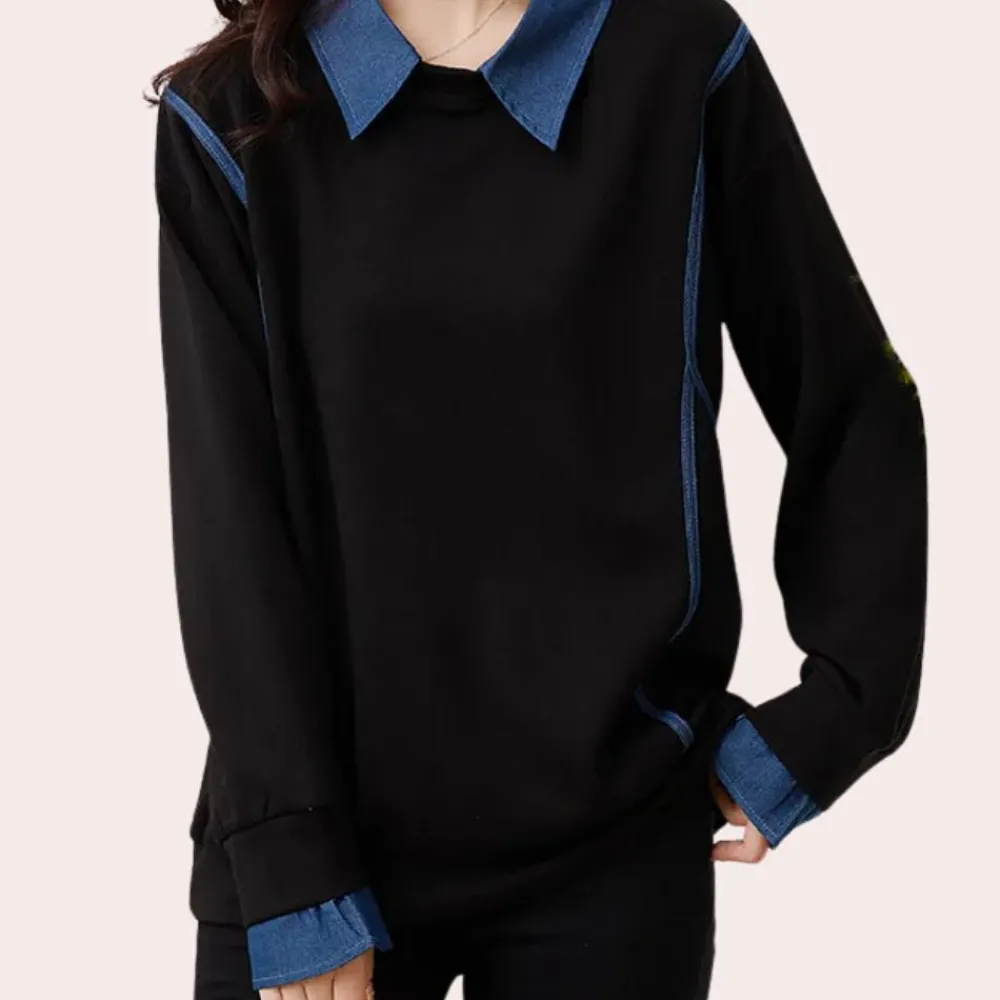 De ruime pasvorm van de Katerina Trendy dames sweatshirt met kraag benadrukt je figuur en zorgt voor een elegante uitstraling.