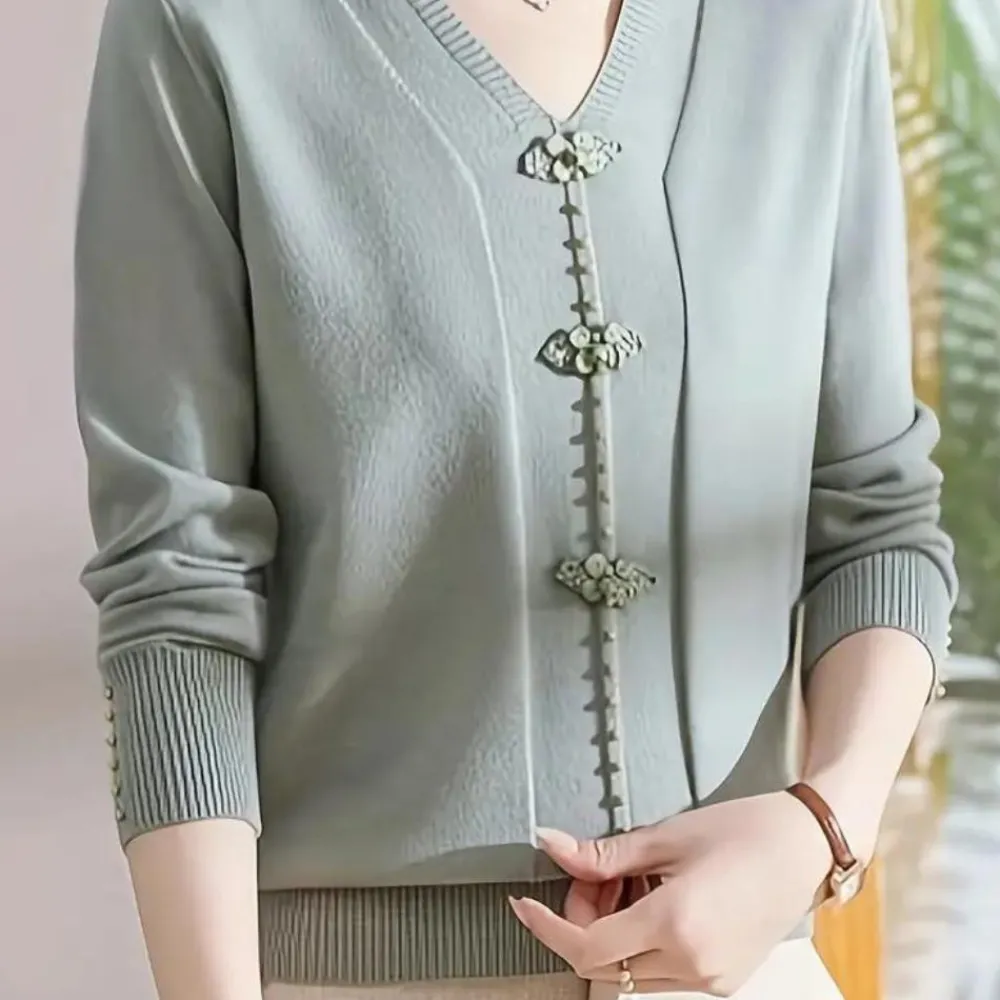Ontdek de Katiya Elegante v-hals trui voor dames, ontworpen om je een stijlvolle en comfortabele look te geven. Deze trui is perfect voor zowel een ontspannen dag thuis als een avondje uit.