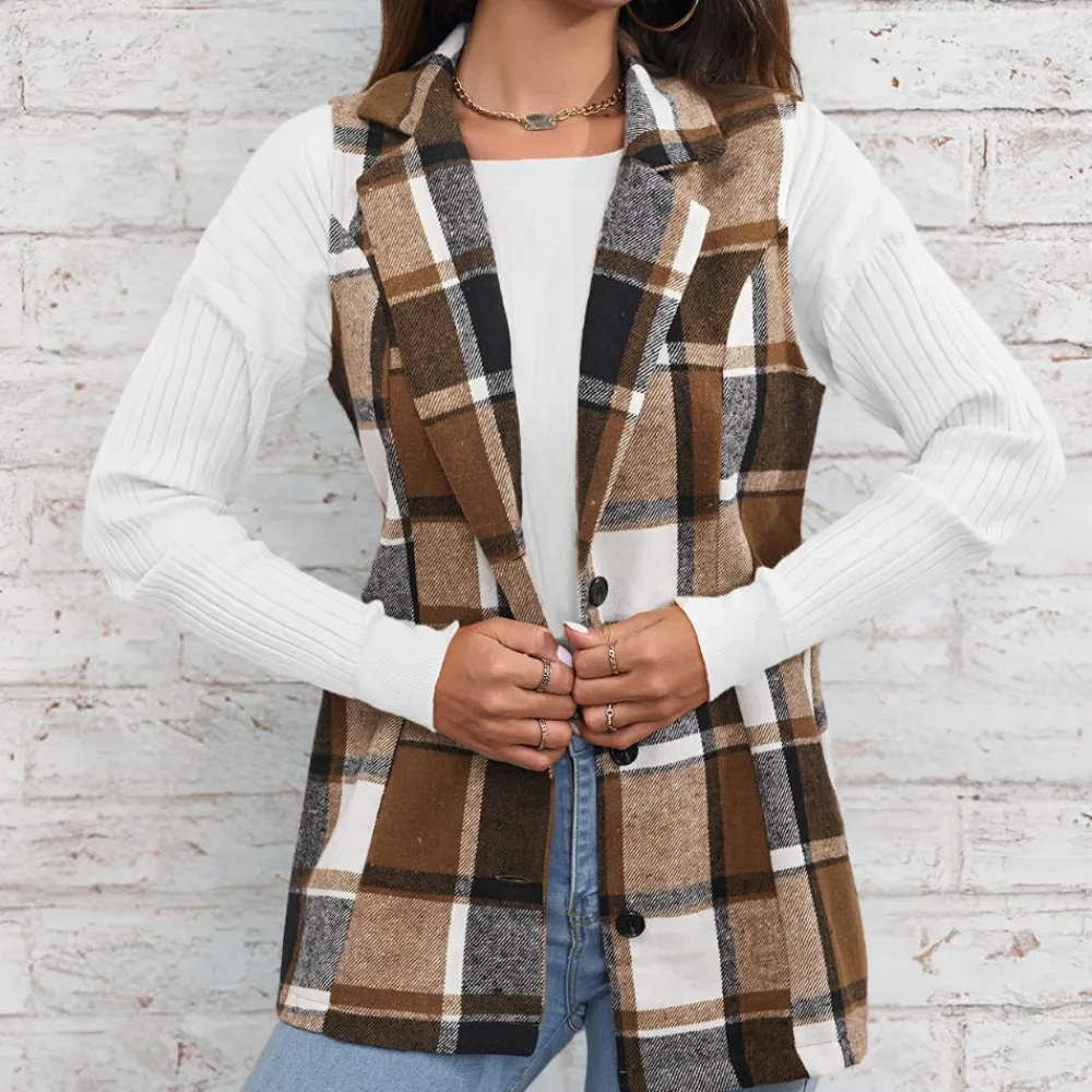 Het Klaudia Stijlvol geruit damesvest voor de winter biedt de perfecte balans tussen stijl en comfort. Gemaakt van zachte polyestervezel, zorgt dit vest ervoor dat je er stijlvol uitziet terwijl je warm blijft.