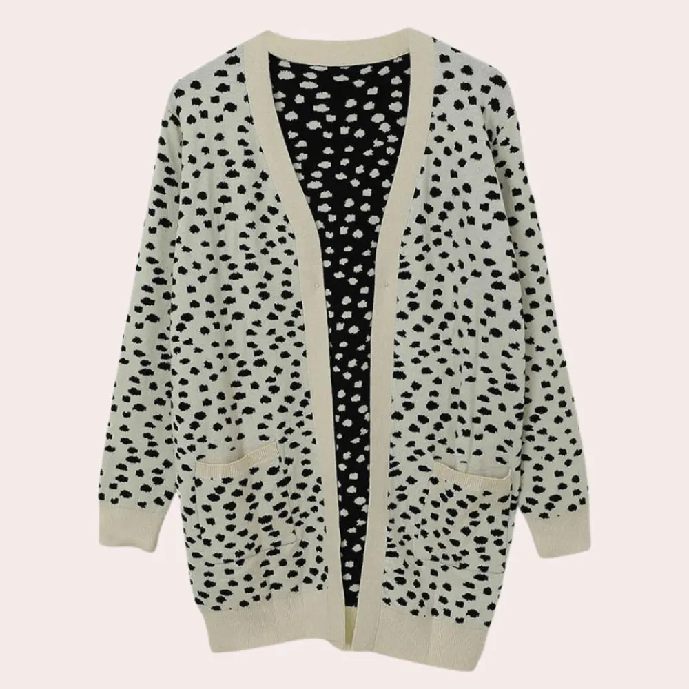 Ervaar het beste van comfort en stijl met onze Laila Cardigan met lange mouwen en print voor dames. Deze lange mouwen cardigan is gemaakt van een zachte en warme katoen-modal mix, perfect voor de koudere dagen. De praktische voorzakken bieden niet alleen extra warmte, maar geven je outfit ook een bijzondere uitstraling.