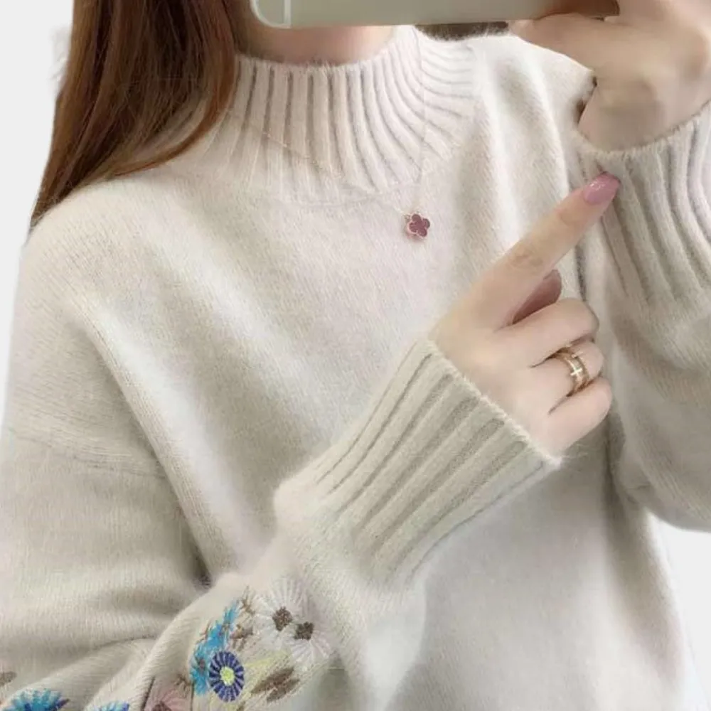 Geef je winterstijl meer pit en maak een blijvende indruk met onze Kaylee Dikke damestrui met bloemenborduursel met delicaat bloemenborduursel. Een unieke mix van warmte en stijl die zelfs bij fris weer een statement maakt.