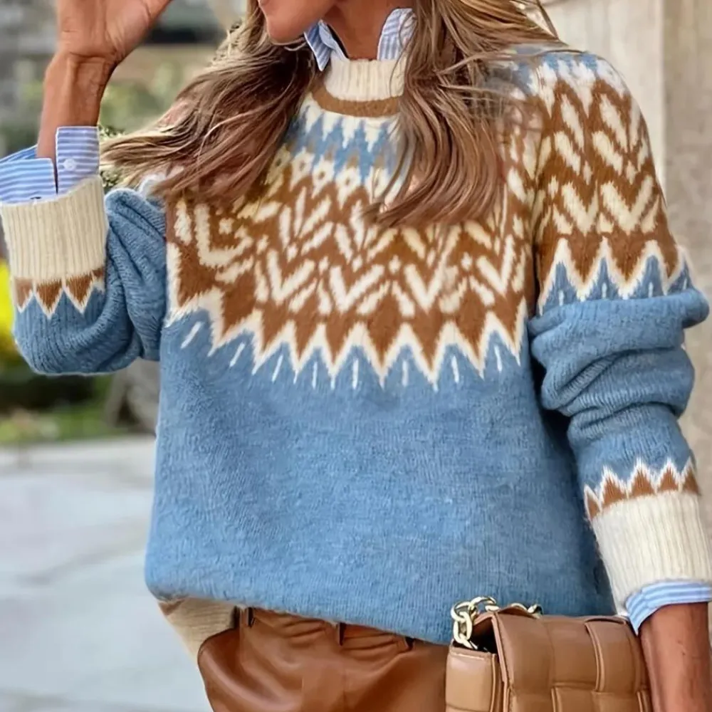 De MADELAINE – Trendy Trui voor Dames voegt een bijzondere sfeer toe aan je dagelijkse outfits met zijn gedetailleerde etnische motief en losse snit.