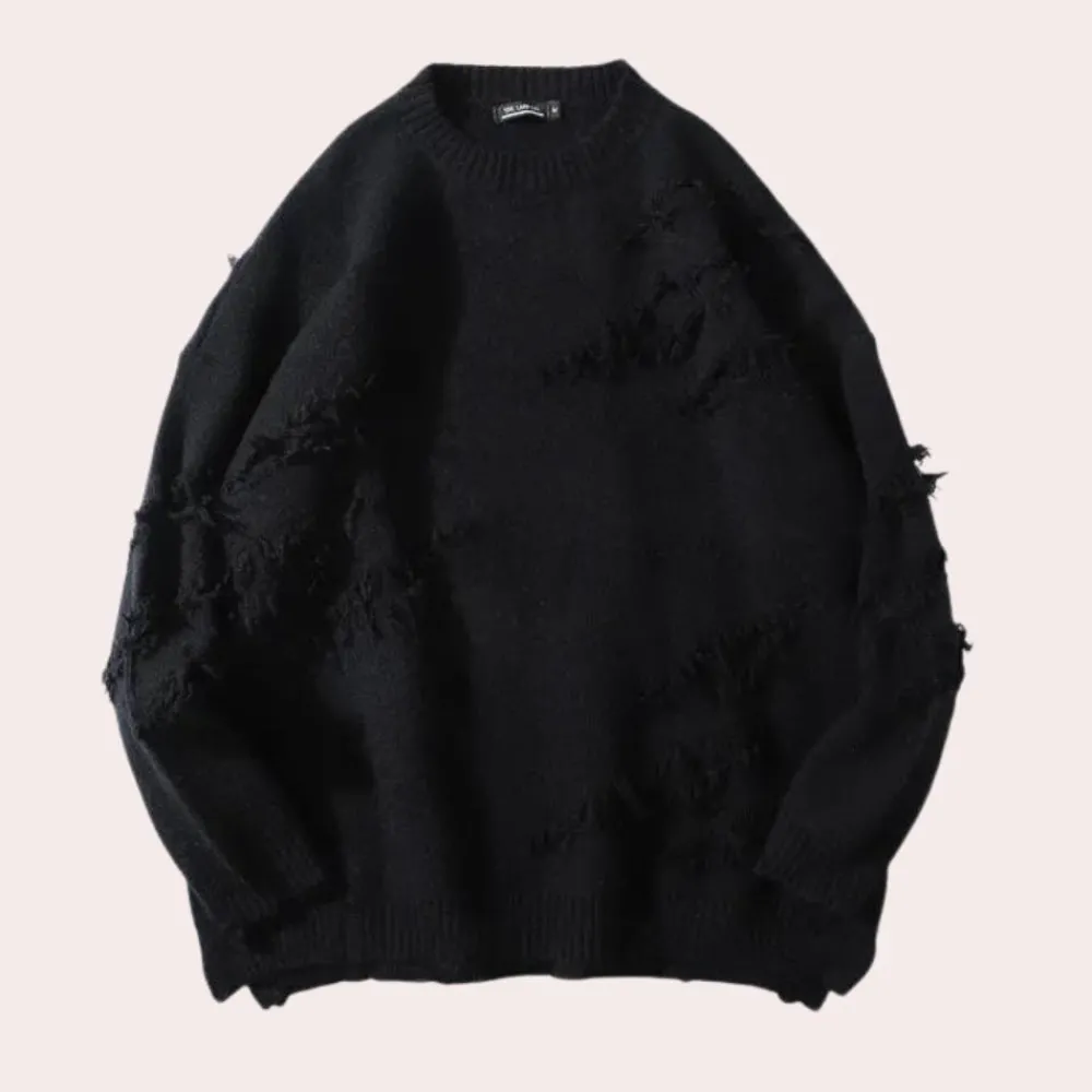 Met een ontspannen, losse pasvorm biedt deze sweater een casual maar stijlvolle look, waardoor hij ideaal is voor relaxte uitjes of aangename momenten thuis. De zachte brei-stof zorgt voor warmte en comfort de hele dag, terwijl het eenvoudige ontwerp het gemakkelijk maakt om te combineren met andere favorieten in je garderobe.