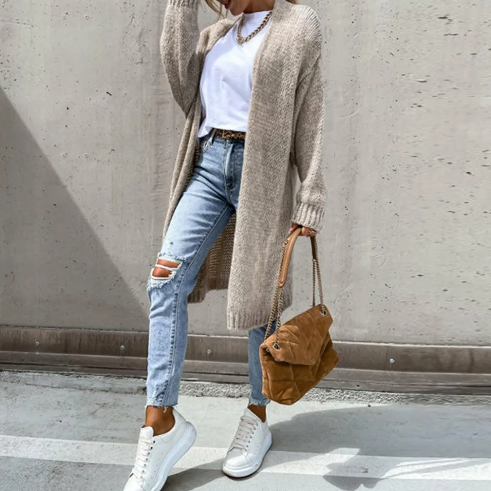 - Winterwarmte: Profiteer van de koudere maanden terwijl je stijlvol en comfortabel blijft. De lange mouwen en het breisel van dit vest zorgen voor de perfecte hoeveelheid warmte om de winter met vertrouwen door te komen.