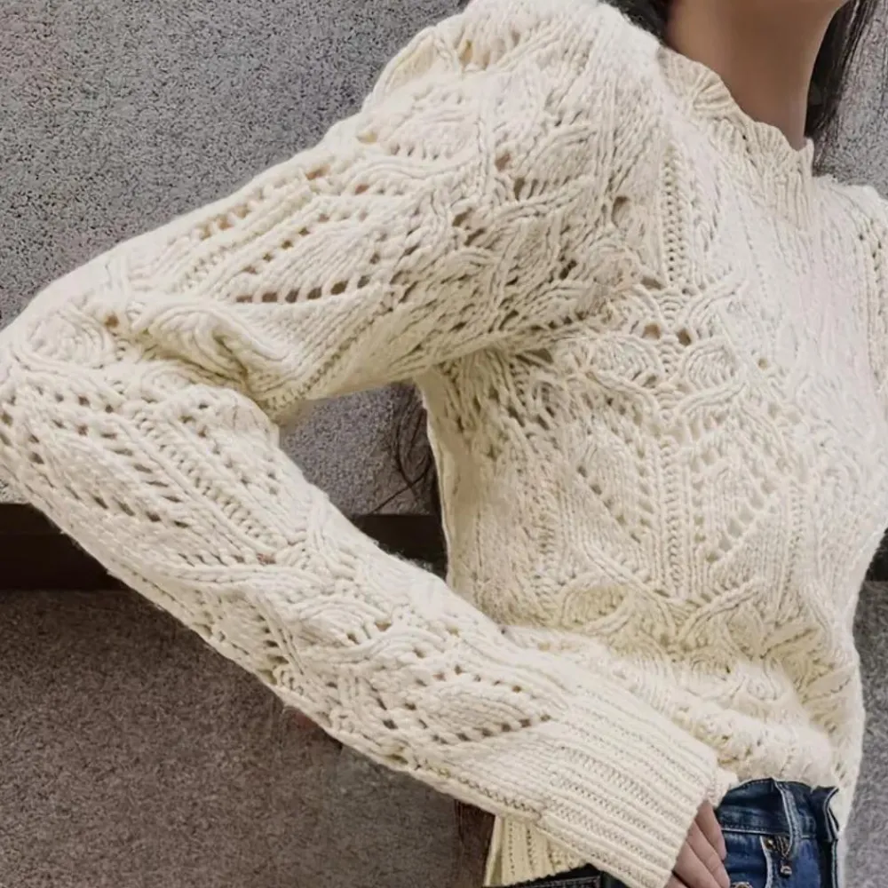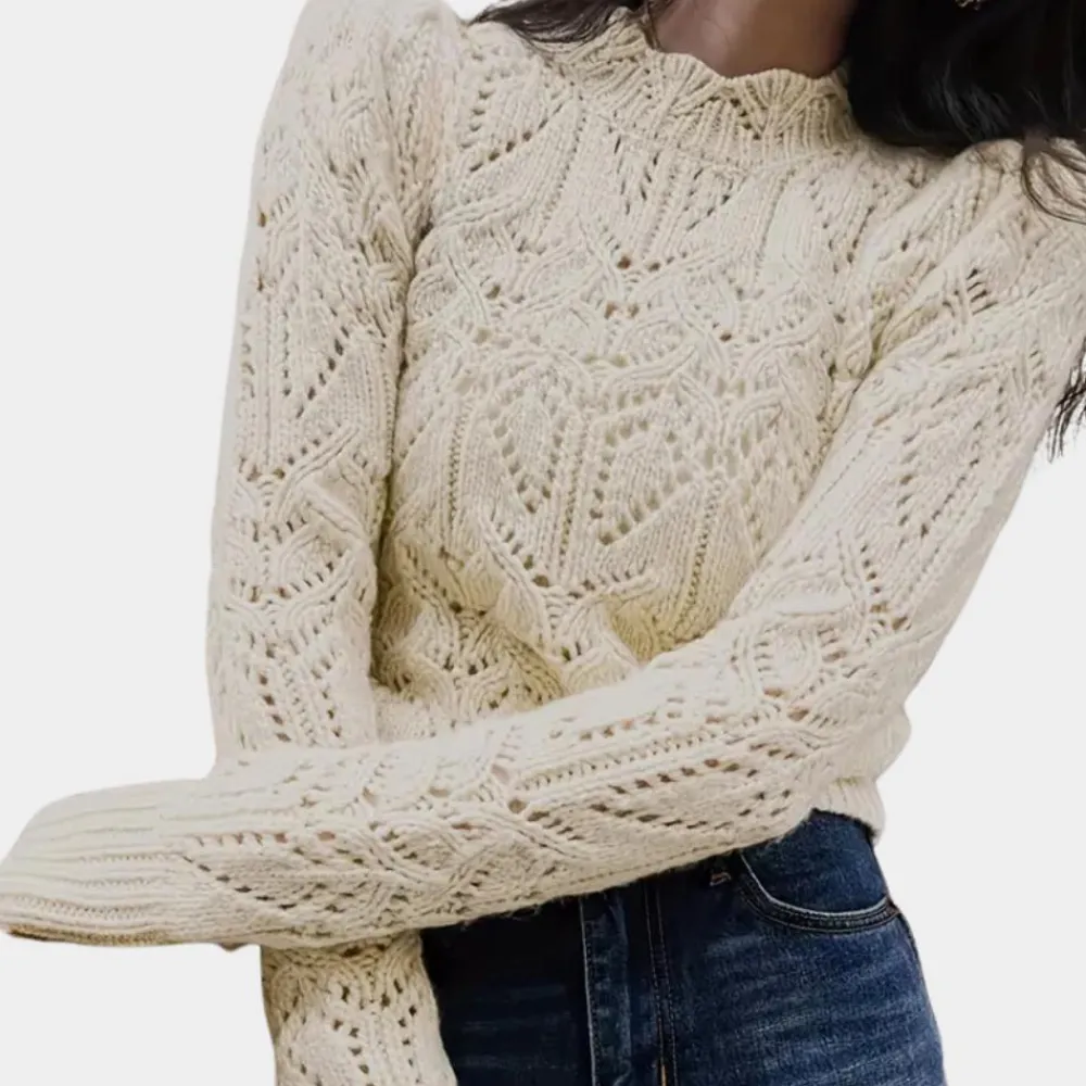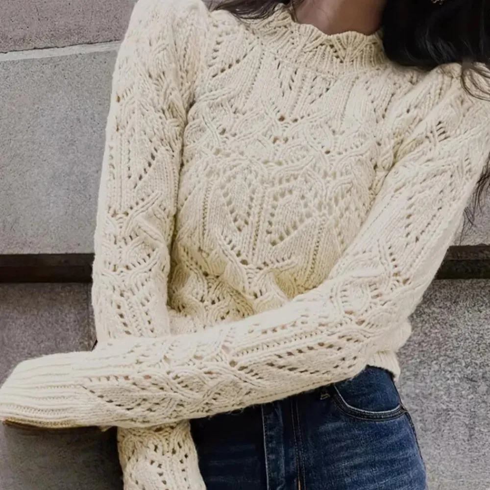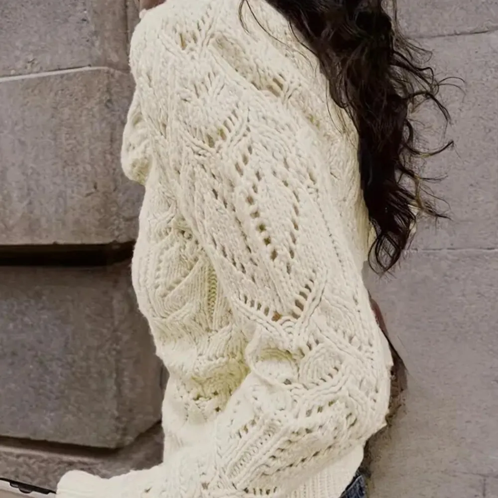 Deze prachtig gebreide trui is ontworpen om zowel stijl als warmte te bieden, met een verfijnd maar eenvoudig silhouet.