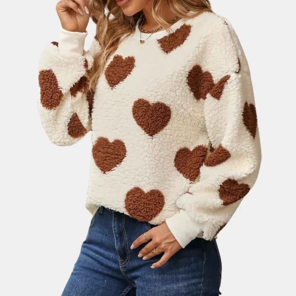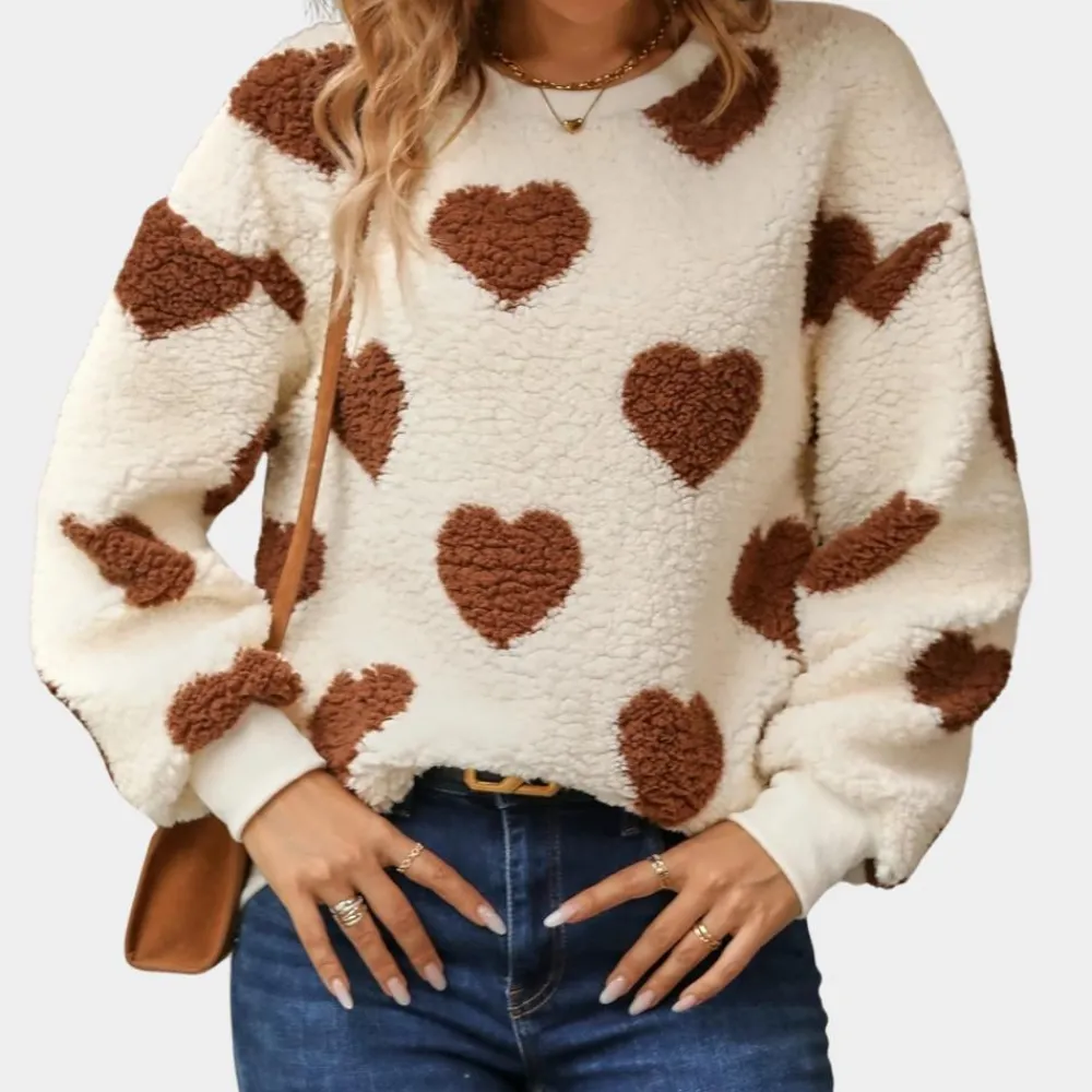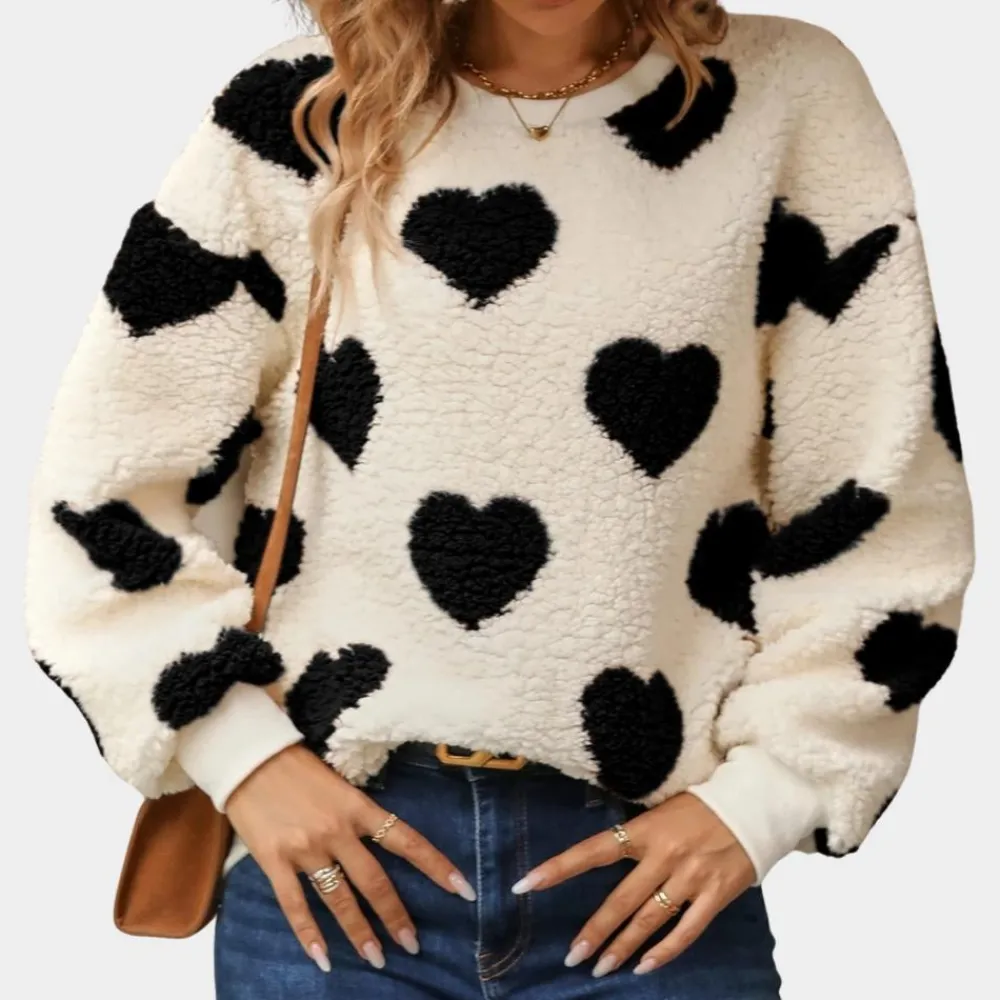 SUPERTRENDY FLUFFY SWEATER MET HARTJESPATROON VOOR DAMES!