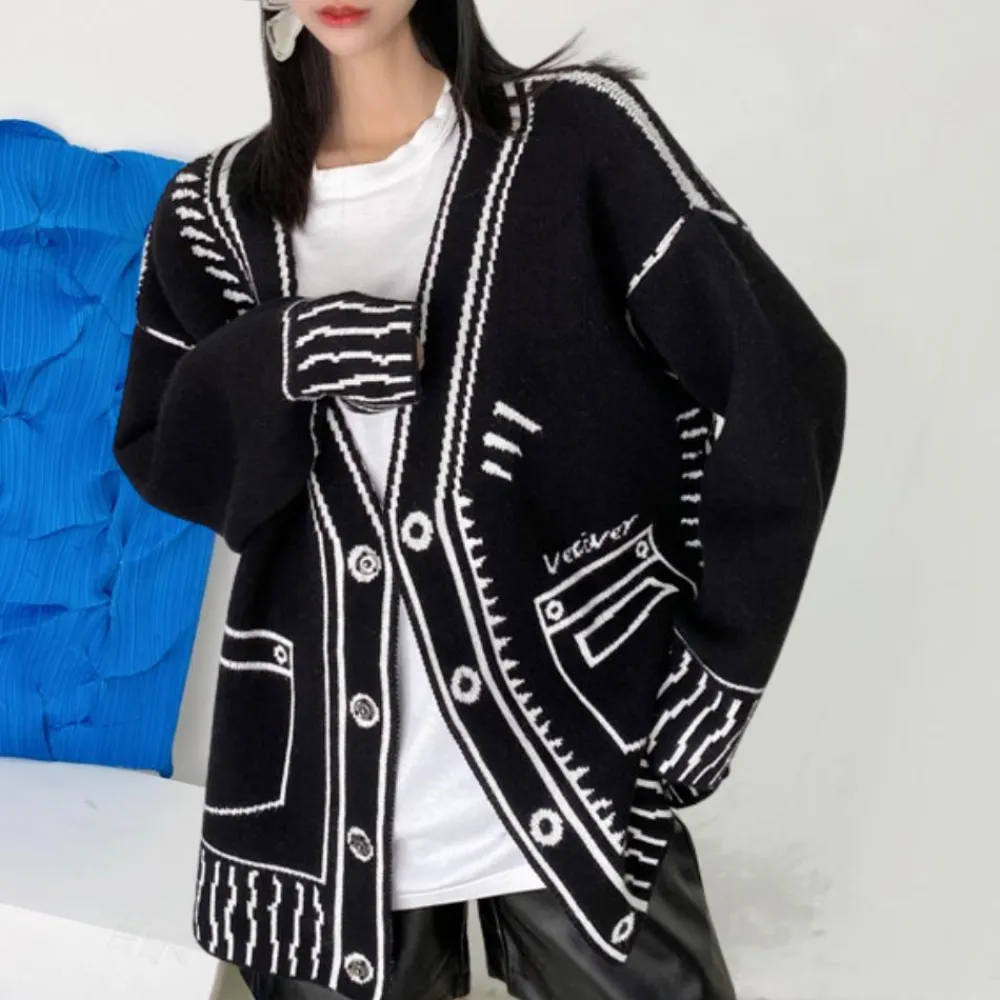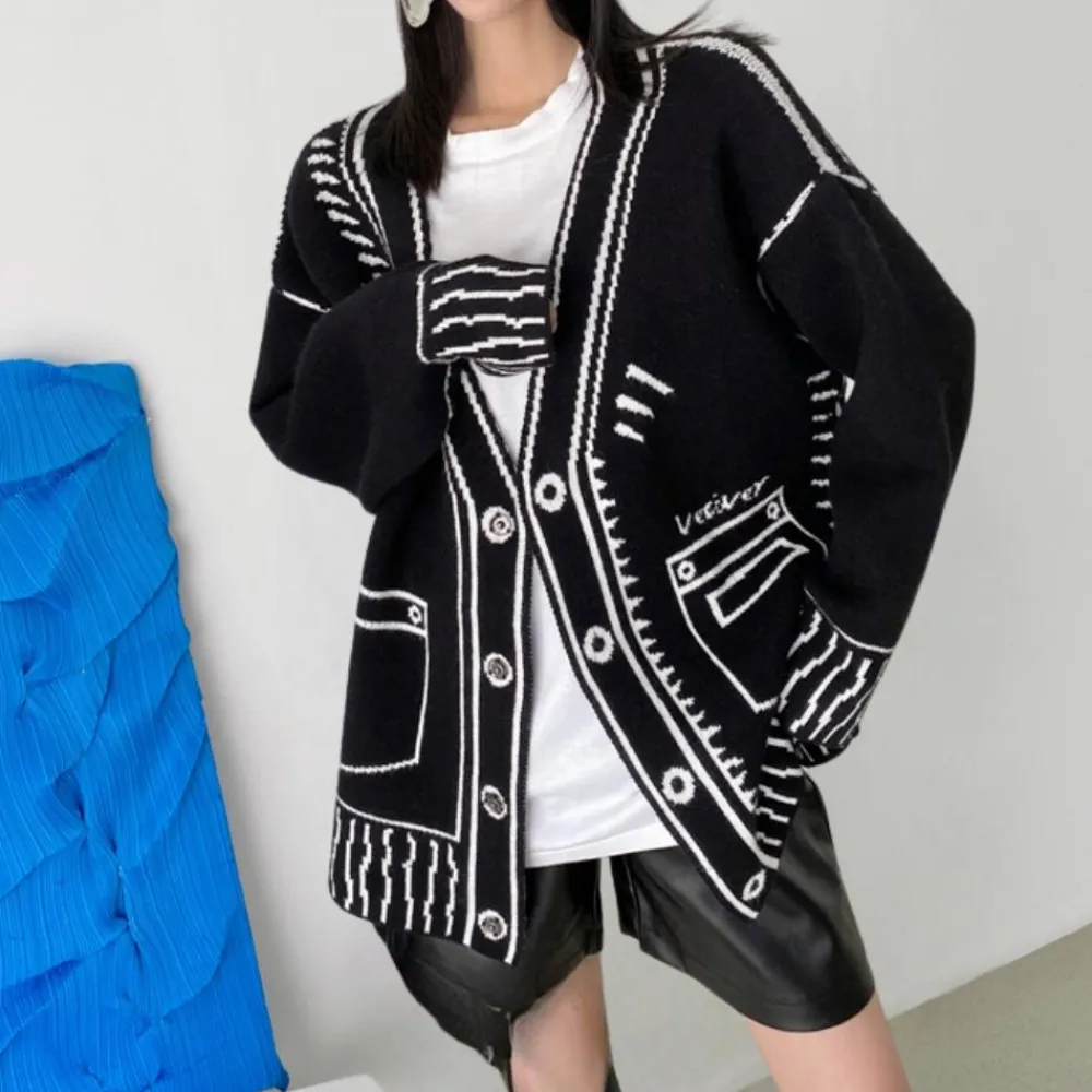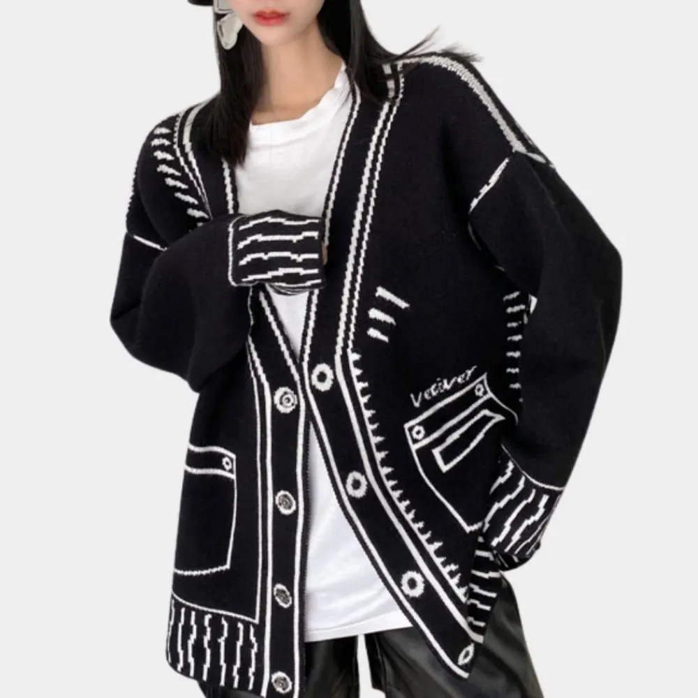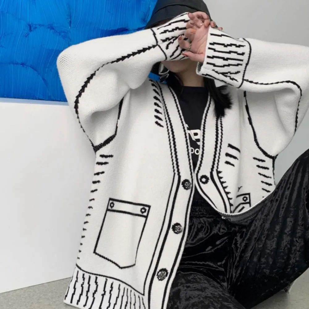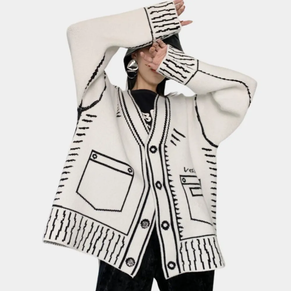 Omarm warme elegantie deze herfst en winter met Theodosia, het ultieme casual vest dat is ontworpen voor moeiteloze stijl. Gemaakt van luxueus kasjmier, heeft dit lange mouwen vest een drop shoulder ontwerp dat de ontspannen, oversized pasvorm benadrukt, waardoor het perfect is voor het dragen over je favoriete outfits.