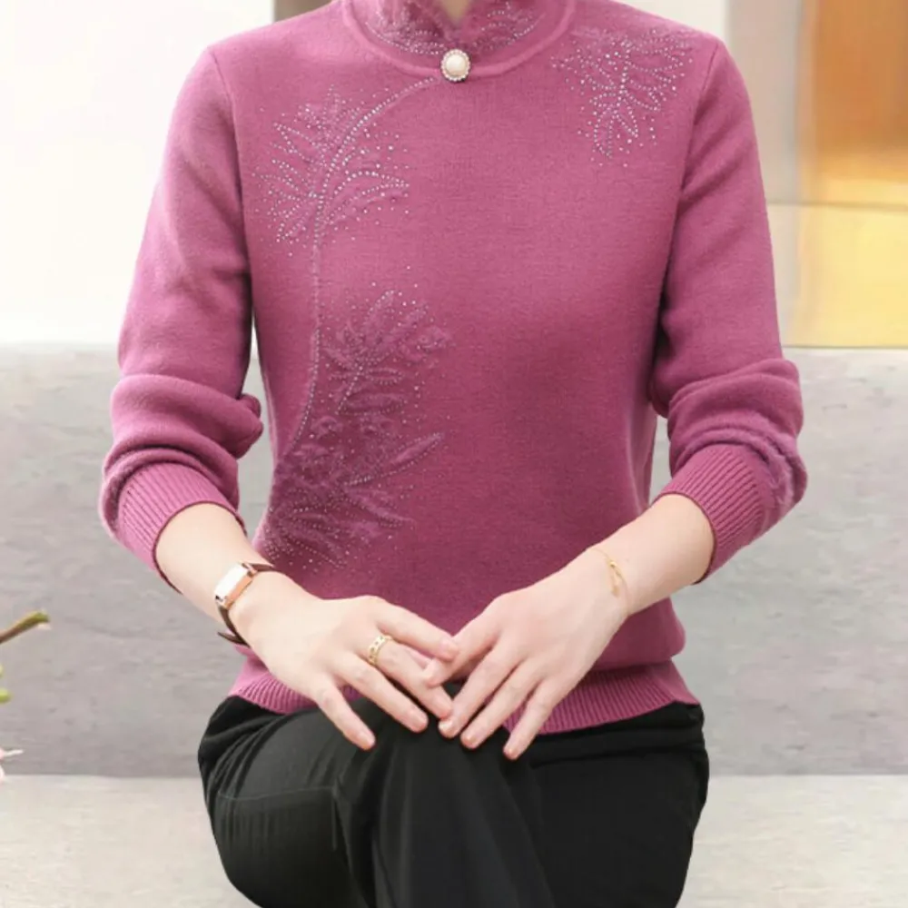 Verhoog je herfst- en wintergarderobe met de Zhenya Vrouwen Eenvoudige en Elegante Trui. Dit stijlvolle kledingstuk is gemaakt van premium minkhaar, wat zorgt voor een zachte en luxueuze feel. Met een charmant bloemenpatroon en een hoge mandarin kraag voegt het een vleugje verfijning toe aan elke outfit.