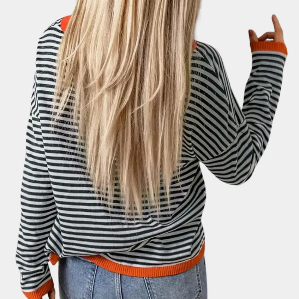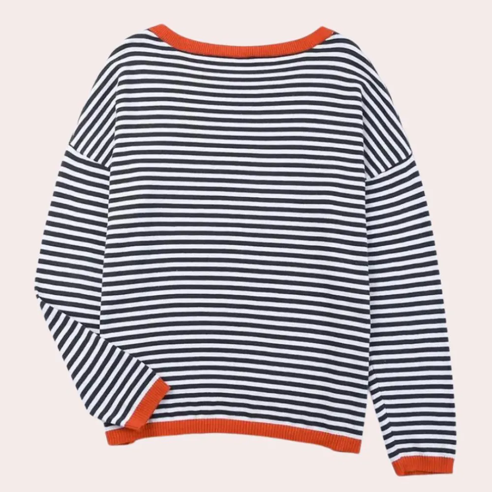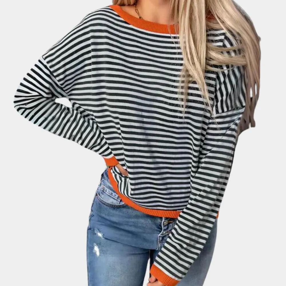 Voeg een vleugje verfijning toe aan je garderobe met de Marjorie Klassieke gestreepte damestrui. Het casual maar stijlvolle ontwerp en het tijdloze streeppatroon maken het de eerste keuze voor elke modebewuste persoon. Combineer hem met je favoriete jeans voor een casual look of met een rok voor een vleugje elegantie.