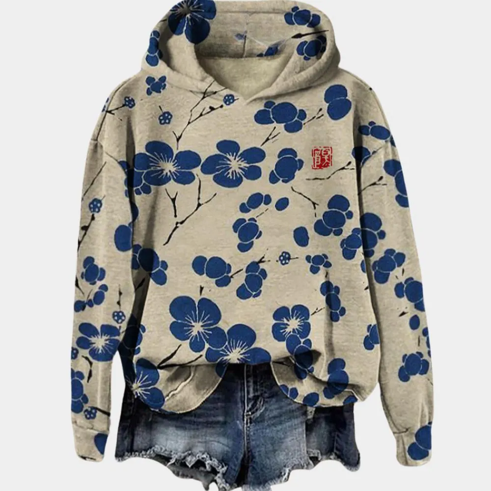Waarom kiezen voor deze damestrui met bloemenprint en capuchon:
