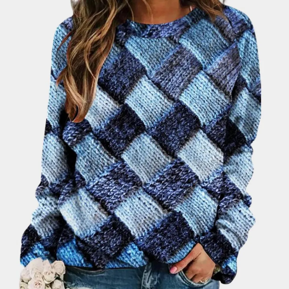 Ontdek onze trui dames met print, verkrijgbaar in blauw, groen, oranje en roze. Deze dames trui is de perfecte toevoeging aan je collectie dames voor zowel comfort als stijl in je dagelijkse outfits.