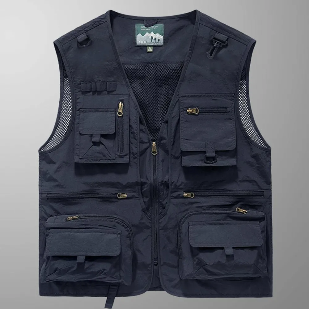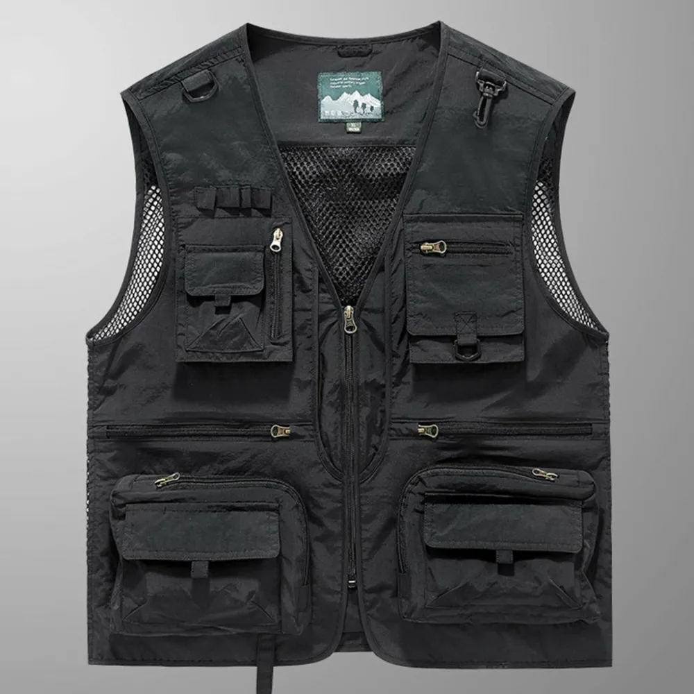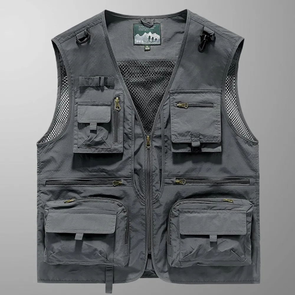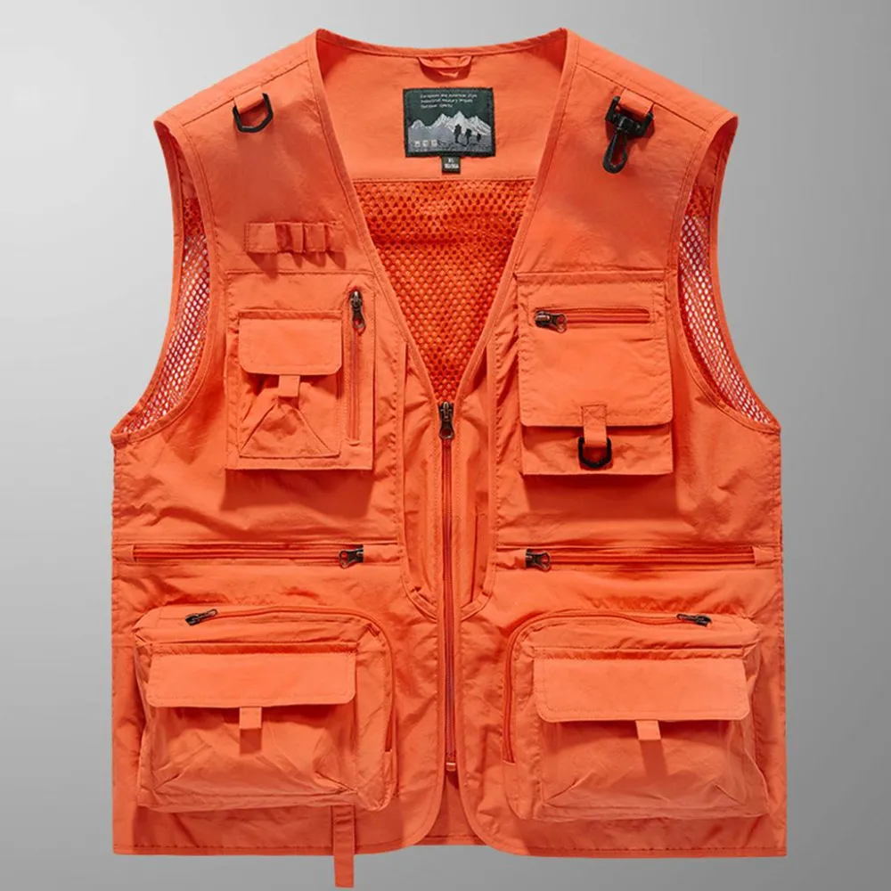 - Met zakken van verschillende afmetingen, waaronder veilige zakken met rits en klittenband, is dit vest uiterst praktisch en veelzijdig, zodat je je handen vrij hebt om je te concentreren op vissen of andere buitenactiviteiten.