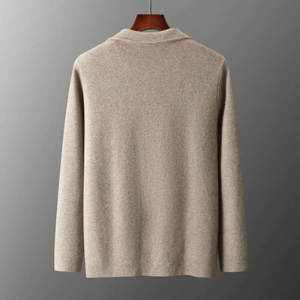 Verhoog je herfststijl met DANIEL Warm vest voor mannen . Dit geraffineerde gebreide jack is gemaakt van 100% eersteklas wol en pluche en combineert warmte en elegantie, waardoor het de perfecte aanvulling is op je seizoensgarderobe.