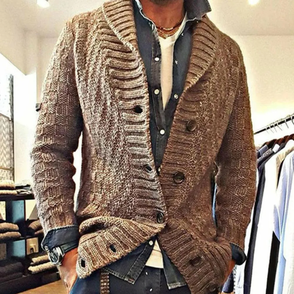 - Eigenschappen – Single Breasted, Shawl Collar, Cable Knit, Multiple Crossover Patterns, Lange Mouwen, Loose Fit